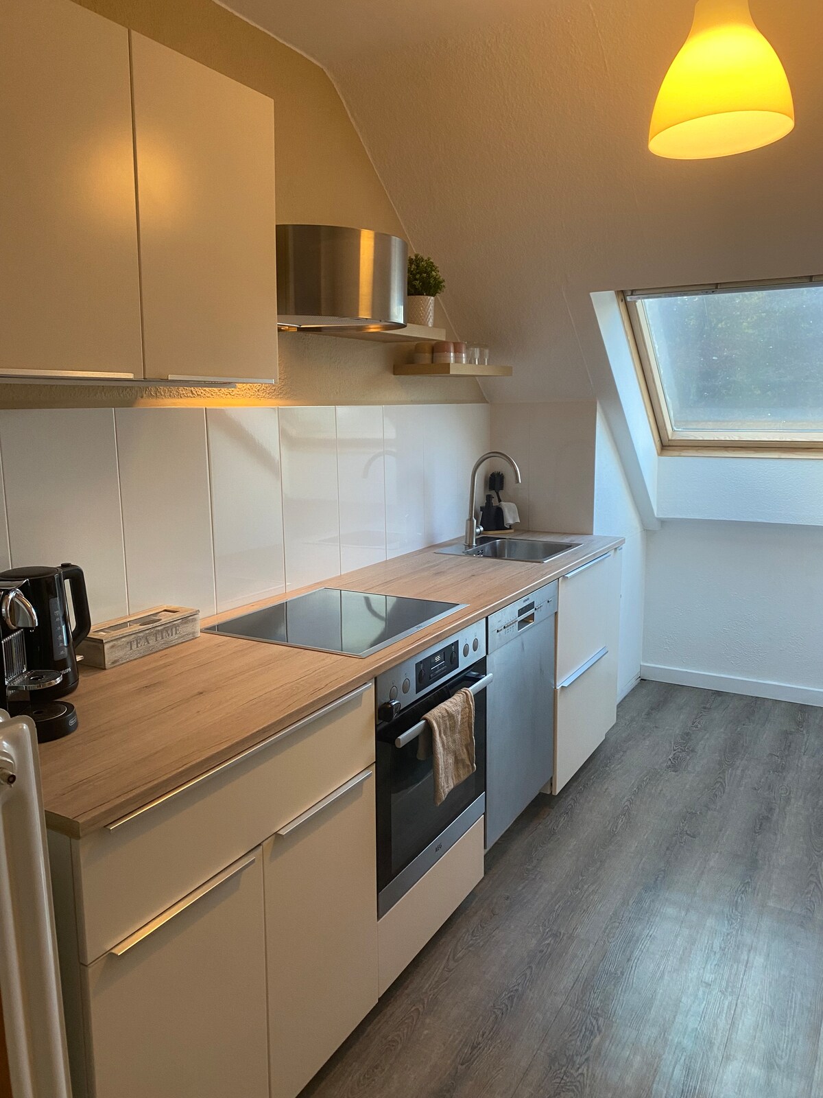 Die Dachgeschosswohnung ist in einem Einfamilienhaus in einem verkehrsberuhigten Bereich. Diverse Einkaufsmöglichkeiten aber auch Restaurants sind in der Nähe vorhanden. Die Wohnung verfügt über einen Arbeitsbereich im Schlafzimmer. Internet (100MBit/sec)/WiFi und Drucker gehören zur Ausstattung. Sie bietet sich wegen der Nähe zu den Messen Düsseldorf und Essen (ca. 25km Entfernung) für Messegäste, aber auch für Pendler an. Abschließbare Garage für Zweiräder ist vorhanden. Keine Haustiere.