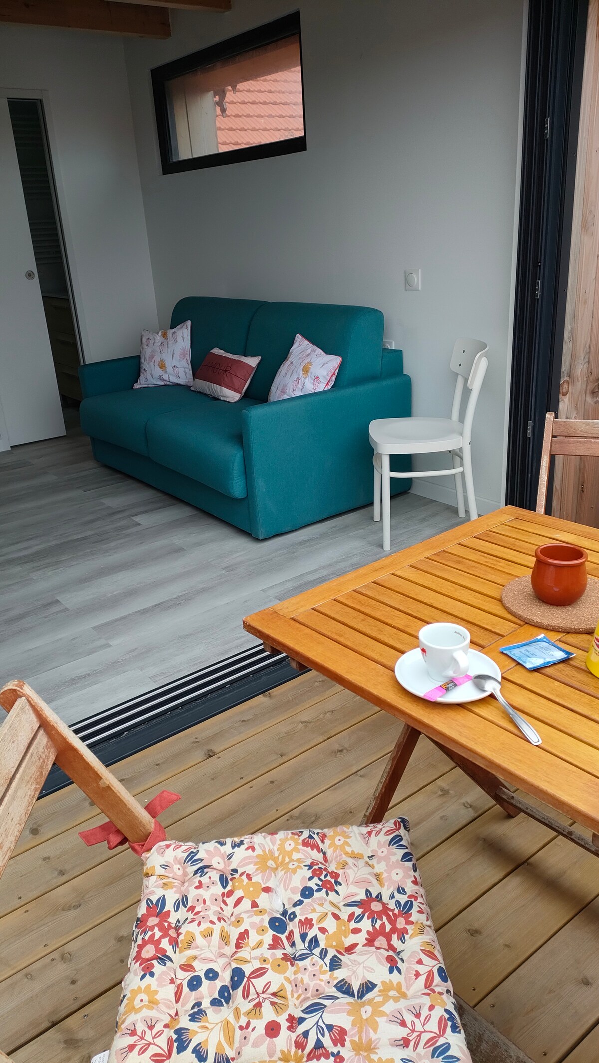 Accommodation independent of the main house, located a 10-minute walk from the beaches and the center of Montalivet-les-Bains. Enjoy a private space including: - one bedroom with a 160 cm bed, - a private living room with sofa and TV, - a separate bathroom equipped with a walk-in shower, double sink, - separate toilets, - a covered and equipped outdoor kitchen, - access to common outdoor areas: enclosed and landscaped garden, outdoor shower, deckchairs, swimming pool.