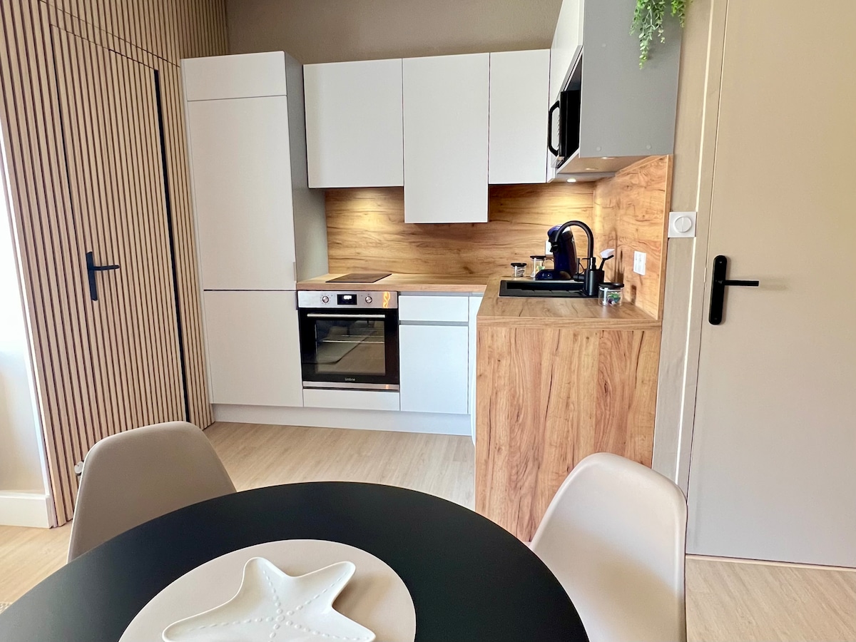 The Valmar Studio, completely refurbished, is a real little cocoon just 150 m from the beach! Ideally located, it offers quick access to shops, bars and restaurants. The studio has a private parking space, air conditioning, internet/Netflix access and a fully equipped kitchen for a comfortable stay. A cabin bedroom with bunk beds suitable for children (max 70 kg) and a comfortable sofa bed for two adults. A modern bathroom.