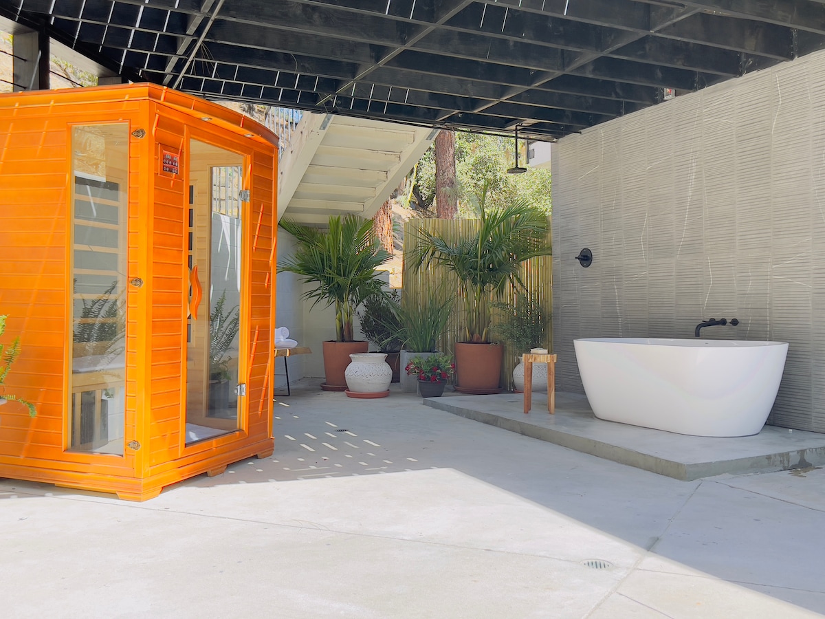 Get the Spa experience in Topanga- Take a break from the noise of the world and recharge in a natural, healing space. This secluded, private retreat offers a private sauna, outdoor shower and soaking tub, loungers, yoga area, weights, and peaceful open-space views. Inside, enjoy a lounge loft, cozy leather couch, 2 TVs, full kitchen, and washer/dryer. Outside, a gas grill and fresh mountain air. Just minutes to town and 15 minutes to Topanga Beach. Healthy supplies, natural fibers, spa vibes.