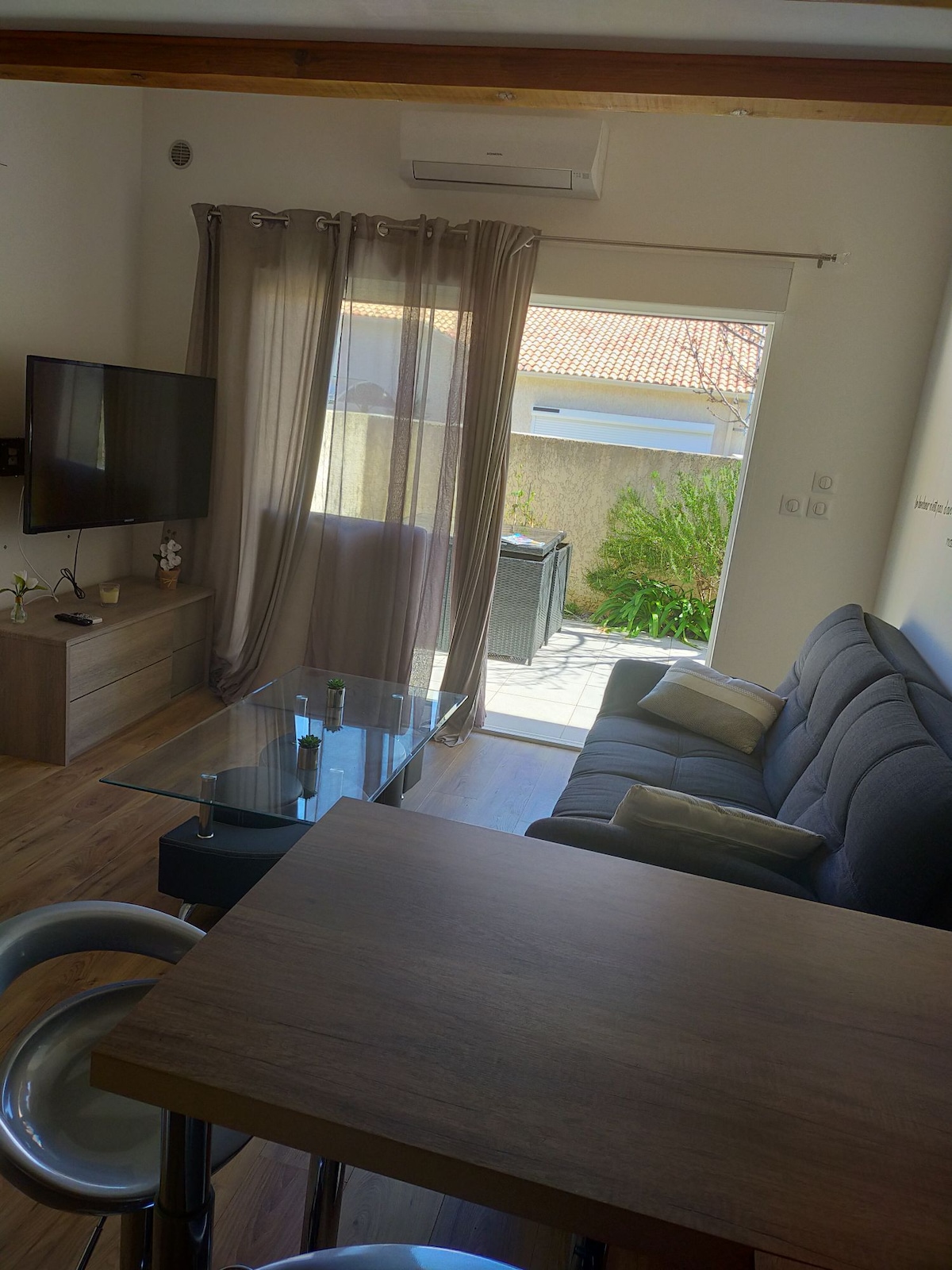 Appartement neuf dans un bas de villa. Une chambre avec lit double , également un canapé convertible 2 personnes. Appartement avec terrasse situé dans un endroit calme, à 5mn de la mer, 10mn de l'aéroport et 20mn de bastia. A proximité de tous commerces et medecins ( boulangerie, pharmacie, alimentation, tabac, restaurants) Cet appartement comprend toutes commodités ( parking privé, cuisine équipée, lave vaisselle, lave linge,climatisation, barbecue....)