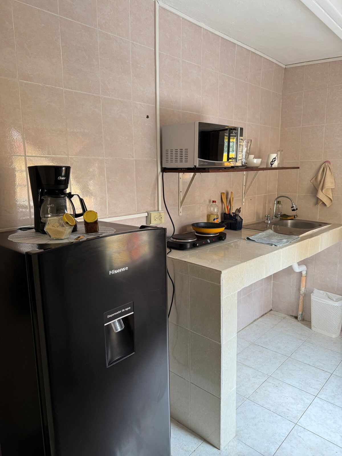 Nice apartment, newly remodeled. Come and be the first to stay here. The space is all for you. It has a double bed, air conditioning, a full kitchen with a refrigerator, a microwave, and a stove. Crockery, dishes, pans. Full bathroom with hot/cold water. A living room with a two-seater sofa, a dining room and two chairs with a large table. SmartTV with Disney+, Netflix, STAR+, Crunchyroll, and more. Dedicated fiber optic internet. Sidewalk level entrance. On the edge of downtown Veracruz.