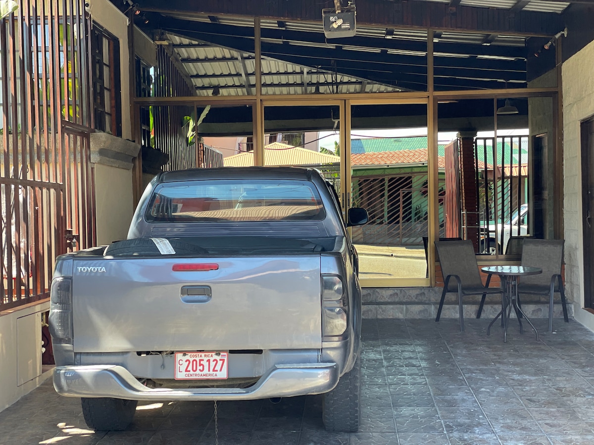 Relax in our beautiful and quiet rustic cabin designed under the integrated and minimalist concept, equipped for up to four people, with a double bed, two mattresses on the mezzanine and a sofa bed. Security through monitored alarm and cameras in common spaces. Green areas, small mountains, trails, gardens, mini sports court, BBQ ranch, as well as beautiful views from our Mirador to Turrialba and watch all kind of birds. Fiber optic Internet and free parking are included.
