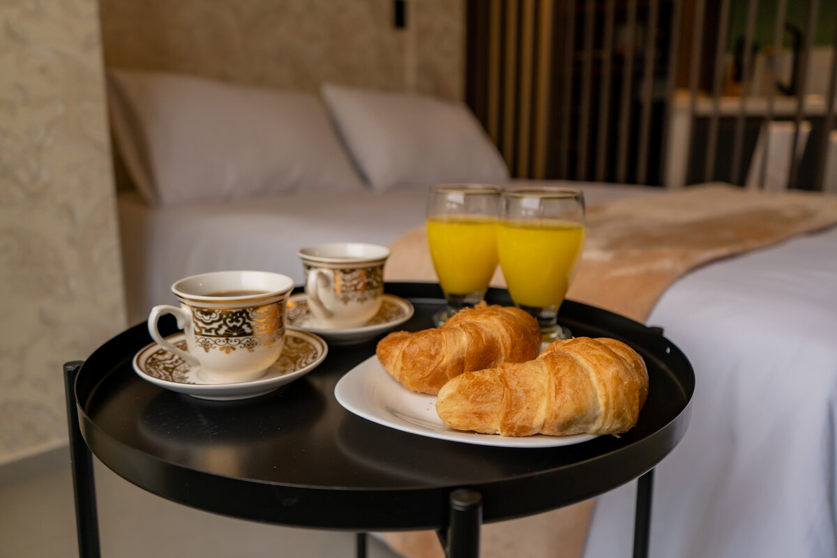 Welcome to Deluxe Pasto Experience! Enjoy a unique stay in our modern and cozy studio apartment located in the heart of Pasto. Designed to offer an experience of luxury and comfort, this space is perfect for travelers looking for an unforgettable stay and a beautiful view of the volcano. *King-size bed 2mt x 2mt ** Private covered free parking