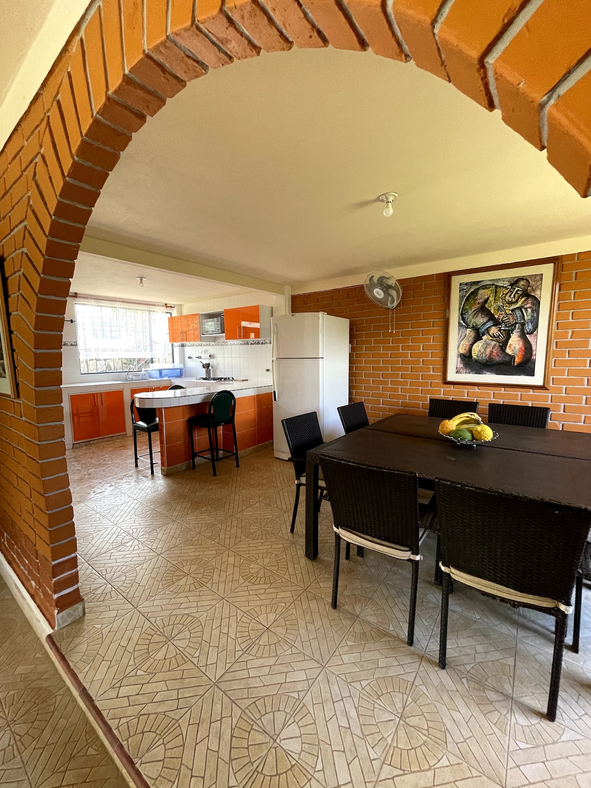 God's masterpiece created with a purpose! Come and enjoy an extraordinary place with excellent weather, created for rest, reflection and family atmosphere. Located in Cimarrones, 20 minutes from Chachagüí Airport. It has a swimming pool, jacuzzi, BBQ, large green area to enjoy with pets. 4 bedrooms, 3 bathrooms, internal kitchen with a complete kitchenware, drinking water filter. Capacity: 17 people and camping for 4 people. Board games and toad.