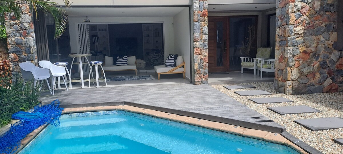 This lovely, fresh and comfortable holiday home in the artistic village of Onrusrivier is 15 min walk from the beach, lagoons and coastal footpaths. Offers amazing entertainment area, perfect for lazy breakfasts and barbecue in the evenings. Close to family-friendly activities and walking distance from lovely restaurants and even a cocktail bar. Wifi, 1 plate gas stove and chargeable lights available during loadshedding. The house comes fully decorated and furnished as seen on pictures.