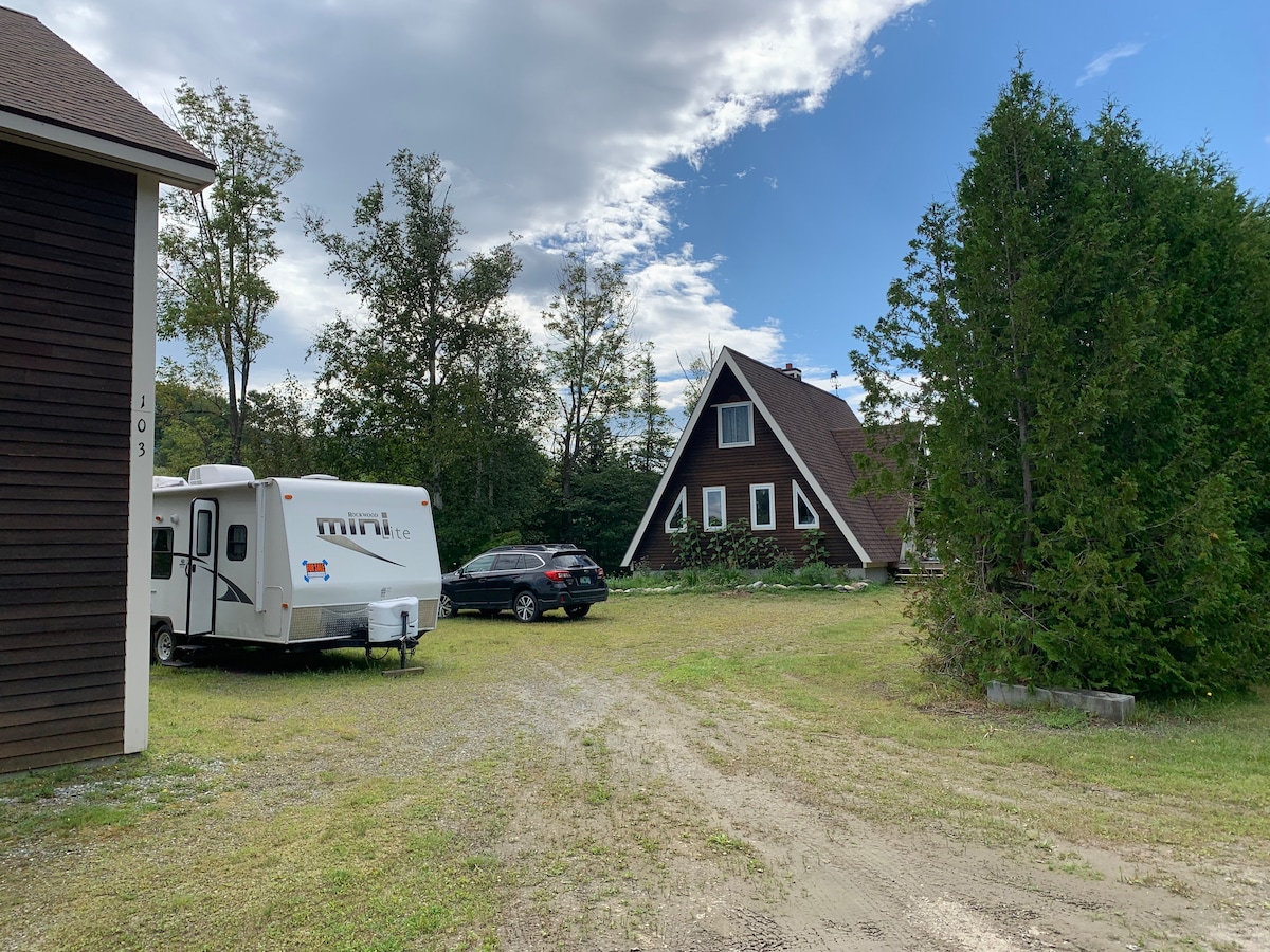 Enjoy a vacation that'll help you escape for a while from all the hustle & bustle. Come stay at our cozy camper to relax and rejuvenate. You'll have access to a grill, a fire pit, and our screened gazebo. Try our lawn games, like corn hole and horseshoes. It's perfect for a couple's weekend getaway! You can visit beautiful Montpelier, the state capital, or historic Stowe, Vermont. Or take a day trip to Ben & Jerry's, Cabot Cheese Factory, Cold Hollow Cider or watch the art of glass blowing!