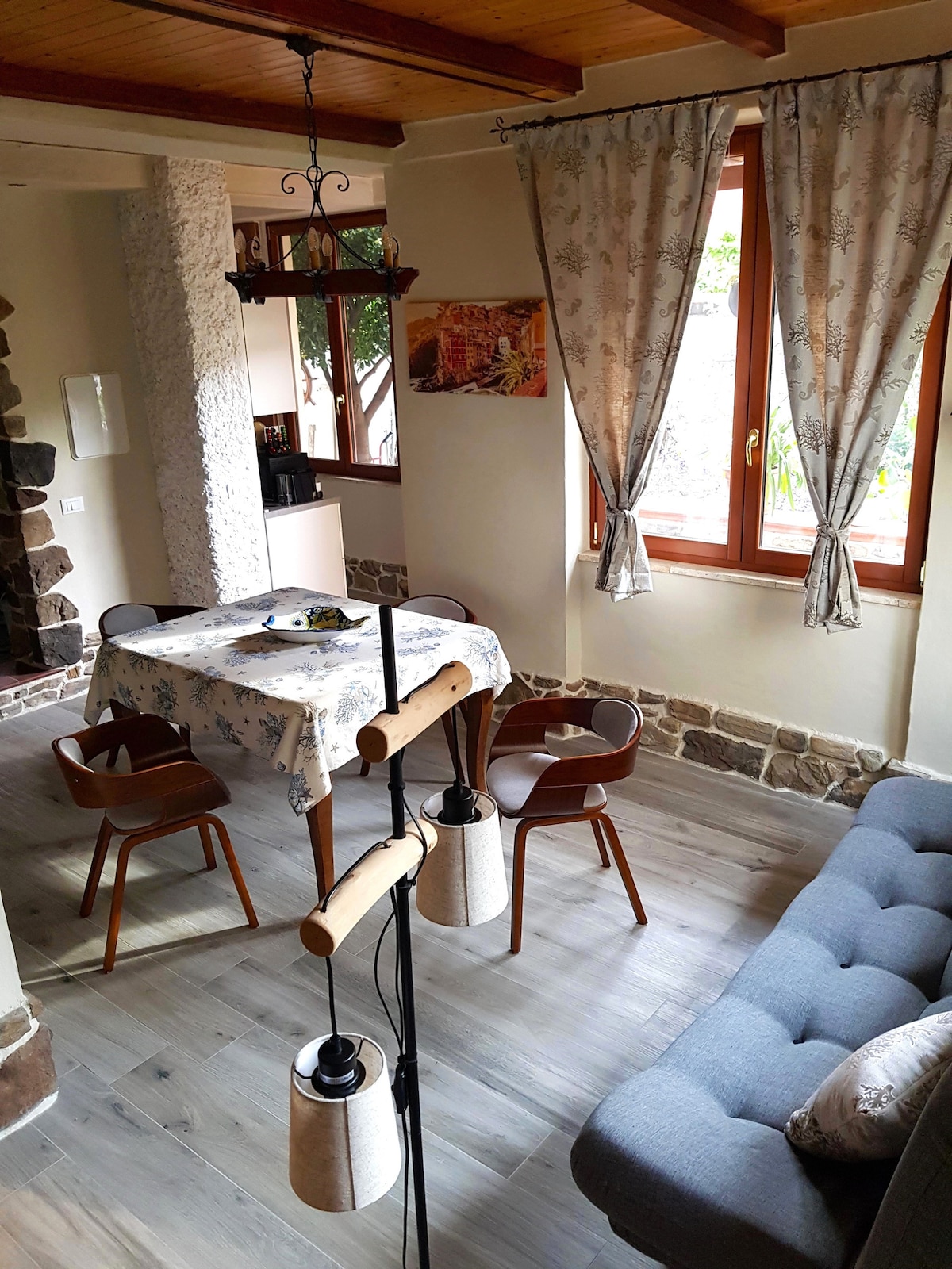 Appartamento ristrutturato nel 2020 contornato da oliveto e bosco, situato su sentiero escursionistico, parcheggio privato, ampi spazi esterni, vista lago e mare. 1 camera da letto matrimoniale, 1 soggiorno con divano letto, (123x189 cm.) TV, Mac+WiFi portatile, attrezzatura yoga, bagno con doccia, cucina equipaggiata. Zanzariere e climatizzatori. Piscina condivisa (diametro 3,5 m., 120 cm di profondità) nei mesi caldi. Palestra di 9 mq. 200 metri di sterrato in salita per raggiungere la casa.