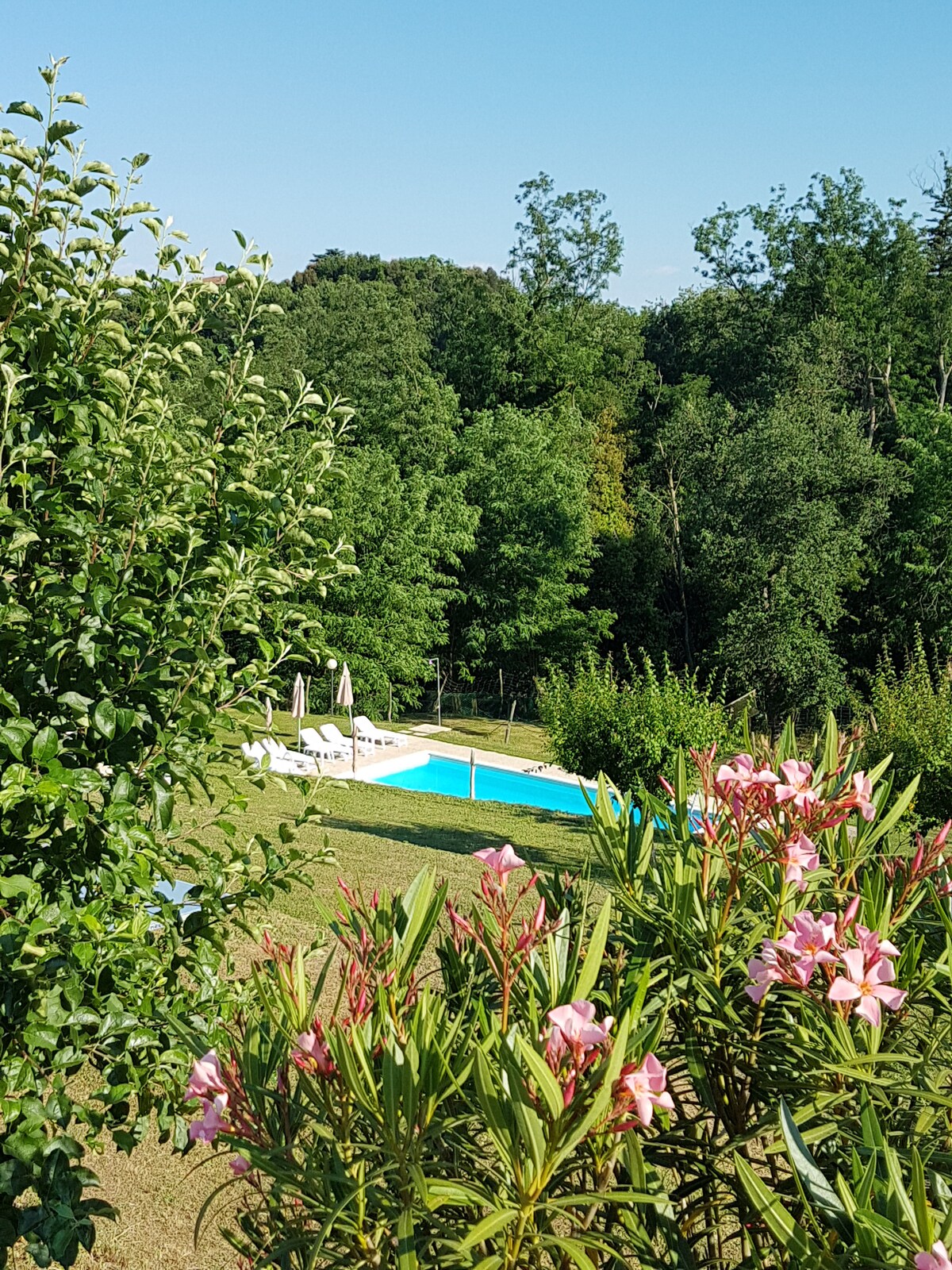 The farmhouse is an oasis of tranquility among woods and olive trees. Located on a hill in an area full of peace and away from city stress. Inside the farm, there is the old renovated farmhouse (obtaining 3 units) respecting the rustic Tuscan style: terracotta floors and wooden beam ceilings. The GIRASOLE apartment consists of a kitchen, a living room with a sofa and TV, a double bedroom, a small bedroom, and a bathroom. Swimming pool and other recreational areas within the farm.