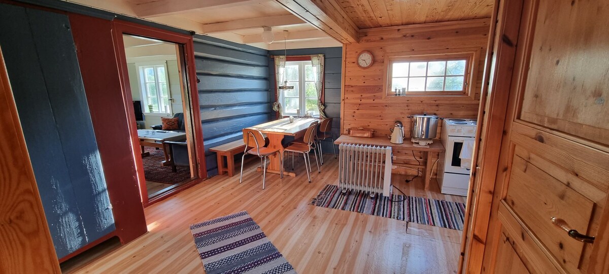 Hjemmekoselig, lite hus for to – peis, ro og natur