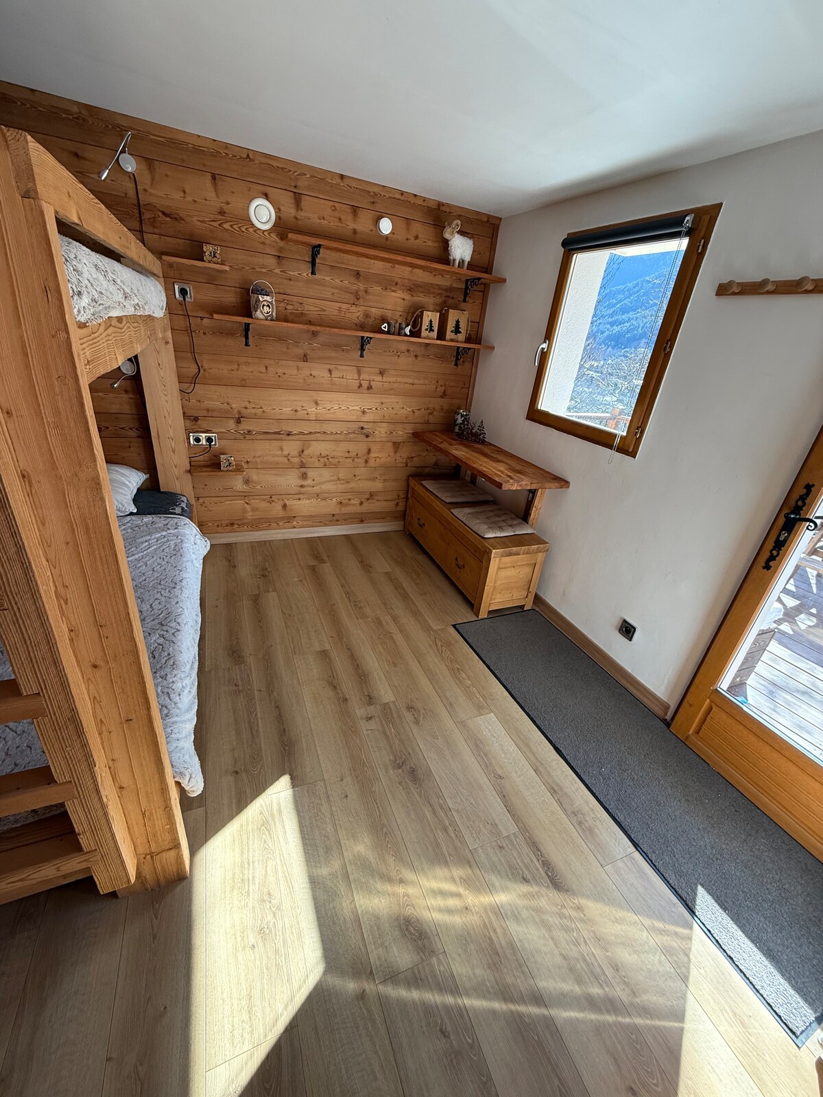 Comfortable 2-room apartment of 32 m2 + terrace Beautiful view! Excellent condition. Carefully decorated. 1 separate bedroom with double bed Living room with 3 beds Equipped kitchenette Bathroom with sink and bathtub, heated towel rail. Separate toilet. Lockable ski locker on the same floor. Free parking.