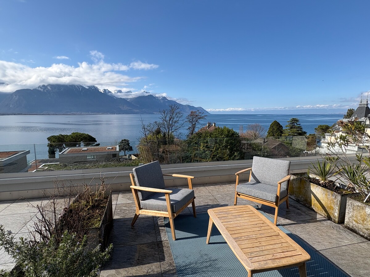 💝 Welcome to your bright, brand-new 55 m² loft on Lake Geneva, just 5 minutes from Montreux. Ski resorts within 35 minutes (Villars, Leysin, Diablerets), thermal baths Lavey 20 minutes away. 🏡 Located on the 2nd floor with elevator of a small building completely rebuilt in 2025, this chic and modern loft comfortably hosts up to 4 guests, featuring a private balcony with a breathtaking lake and mountain view. you’ll instantly feel at home. 🅿️ + Public transports 1-2 minutes by walk.