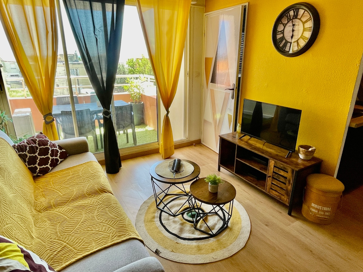35 m2 ground floor apartment with garden giving direct access to the beach: the dream! It was completely refurbished in 2022 with all amenities (FreeBox, Smart TV, Wi-Fi speaker, Nespresso, separate toilet, quality bedding, etc.) and the desire for you to feel "at home". Pleasant and bright, with a refined decoration, it is perfect for a romantic or family stay. From the garden, equipped with a barbecue, you are facing the Mediterranean Sea...