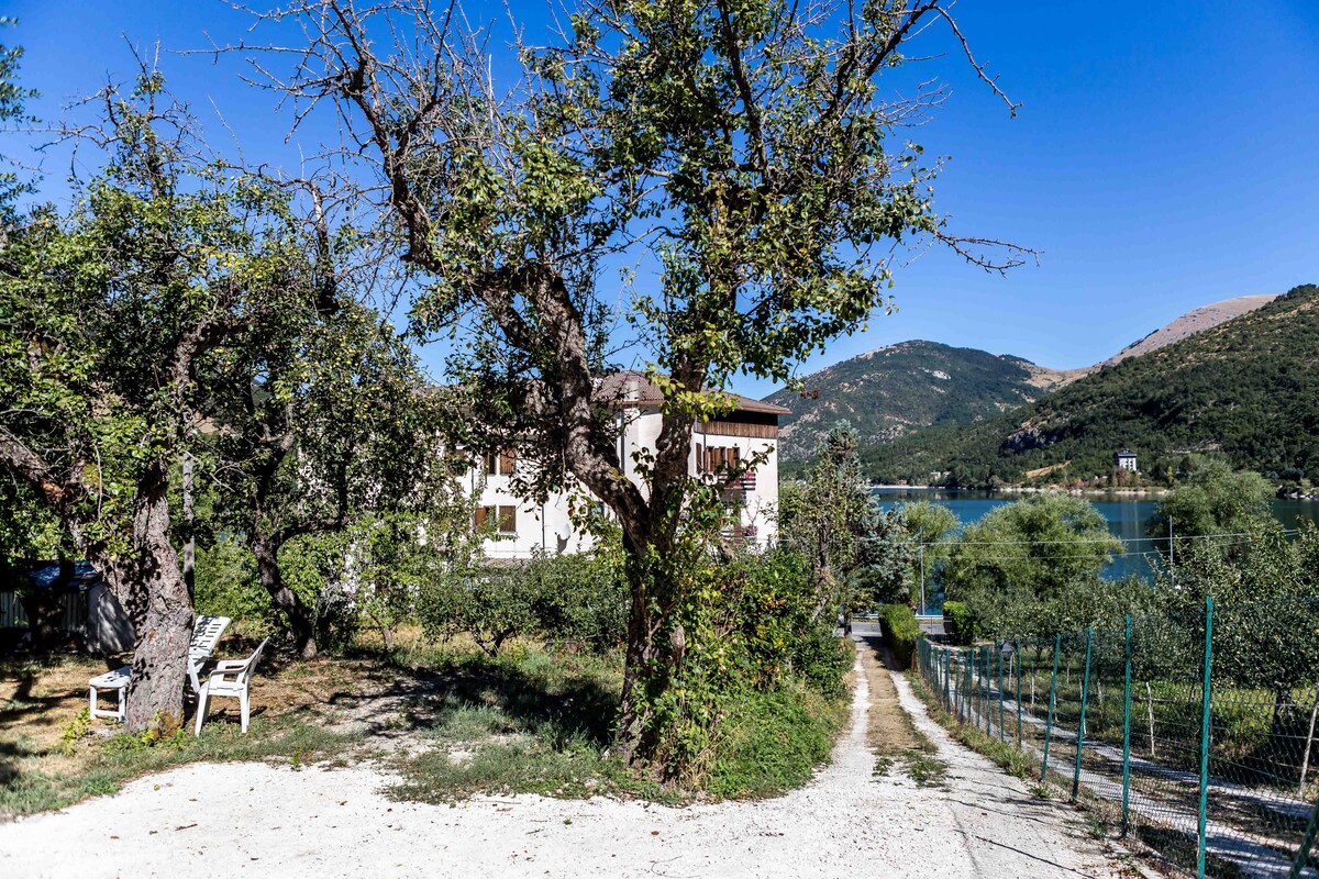On the shores of one of Italy's rare natural lakes, with a suggestive heart shape nestled in the mountains of the Abruzzo National Park, stands Villa Giovanna and its Depéndance, lapped by the calm waters of the lake. Waking up to the reverberation of the water or the sound of the gentle waves gives serenity to the human soul, the possibility of discovering the surrounding nature directly from home is unparalleled. Possibility to use a surfboard and a 2-seater kayak directly from the house
