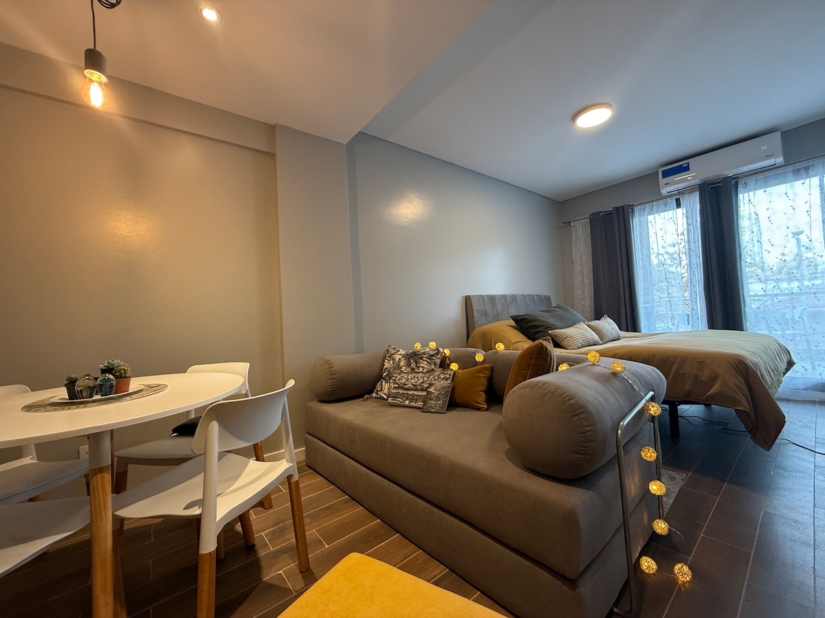 This modern, bright studio in the heart of Belgrano is in a brand-new building with 24/7 security. Located on the 8th floor, it offers great views and natural light, perfect for vacation or work. It's fully equipped with a full kitchen, a queen bed with hotel-quality linens, and a Smart TV. It includes AC, heating, and 300MB WiFi. The neighborhood is vibrant with excellent access to public transportation. The studio also provides bedding, towels, a hairdryer, and an iron for your convenience.
