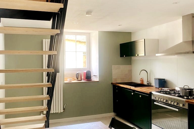 Located in an old flour mill, Studio Silhem has an excellent quiet location, just south of Limoges, close to the A20 motorway through central France and walk-able to the train station in St Germain les Belles. Bright & colourful decoration with a warm welcome. Equipped kitchen with gas hob, microwave, kettle, fridge & coffee machine. Ideal for one night stop overs on a long journey to refresh yourselves. We can accommodate all arrival times. Outdoor table & chairs plus bbq available.
