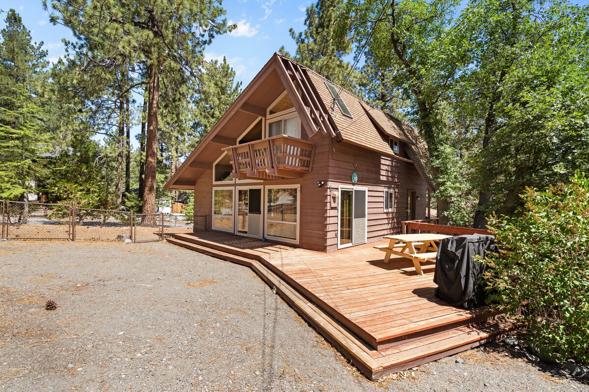 Tucked among the pines, Sprocket Hollow is a secluded A-frame, thoughtfully renovated with modern comforts including AC. This three-level cabin offers decks, treetop views, & mountain serenity just minutes from Lake Arrowhead Village. Start mornings with coffee on the deck, fresh mountain air & blue jays in the trees. Spend days hiking, exploring the lakes or doing nothing at all. At night stargaze by the firepit, or enjoy our retro vinyls, arcade games & wood burning fire in the downstairs den.