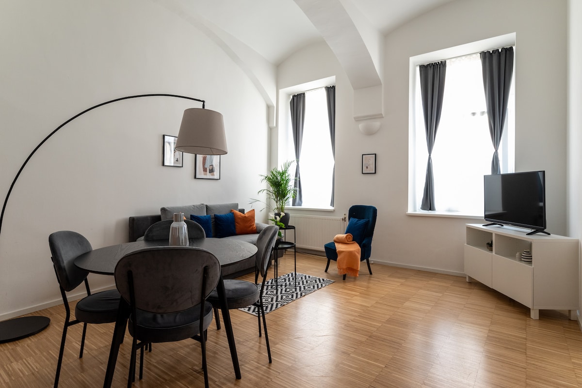 Step into this stylish, modern one-bedroom apartment with premium amenities in central Vienna. Enjoy a fully equipped kitchen, a cozy living area with a convertible sofa bed, and a bedroom with a king-size bed, ample storage, and a washing machine. This apartment combines comfort and functionality in a historic building with a lift. ✔ King-size bed ✔ Sofa Bed ✔ Fully Equipped Kitchen ✔ High-Speed Wi-Fi ✔ Air-Conditioning Read more ↓