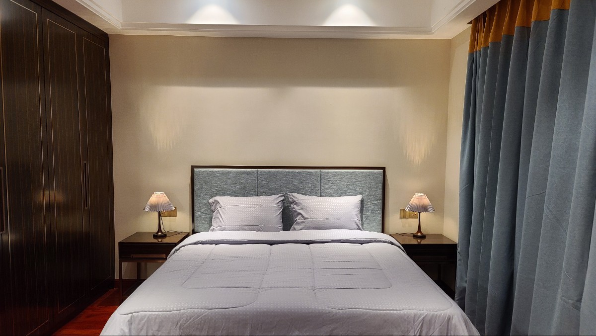 A modern one-bedroom apartment, 40m², located right in the heart of Vientiane. The room is airy, featuring a king bed (1.8m), air conditioning, TV, Wi-Fi, and a quiet workspace. You can comfortably cook with the kitchen, which comes fully equipped with basic cooking utensils and a refrigerator. Each apartment includes daily housekeeping service and the private bathroom. This is an ideal choice for business travelers, tourists, or long-term stays.