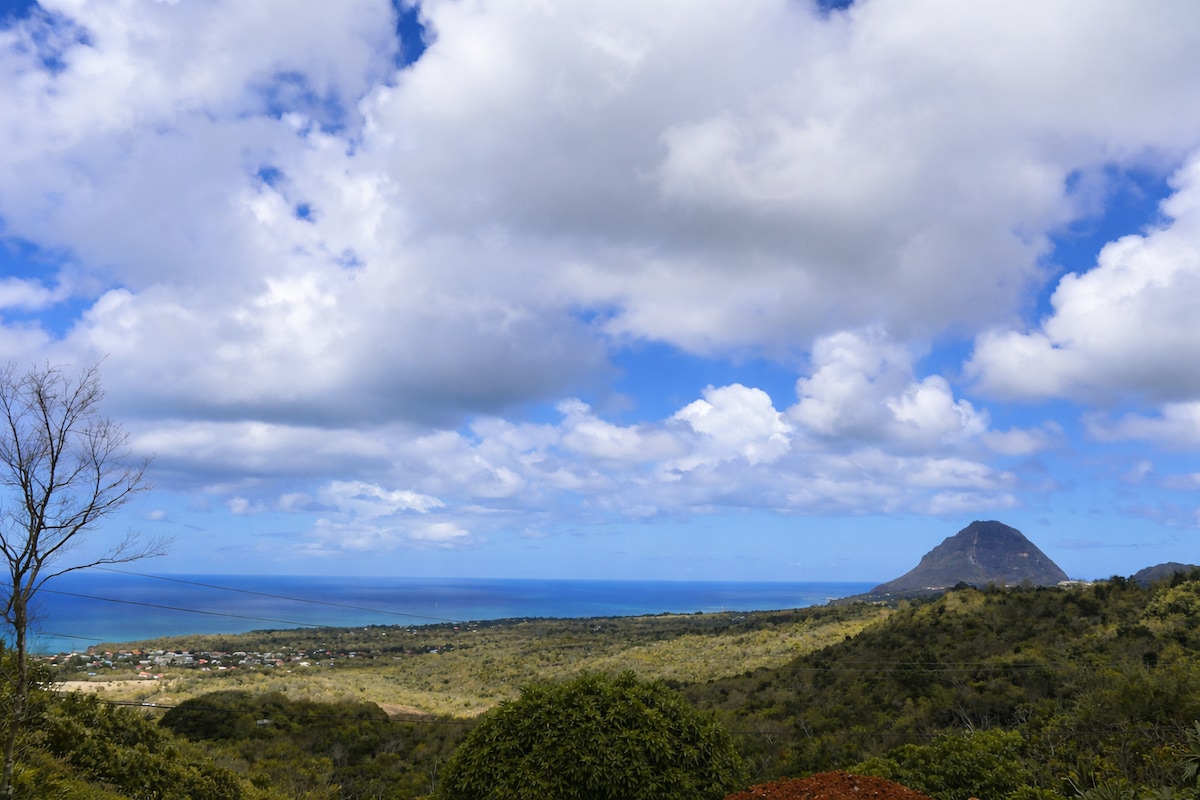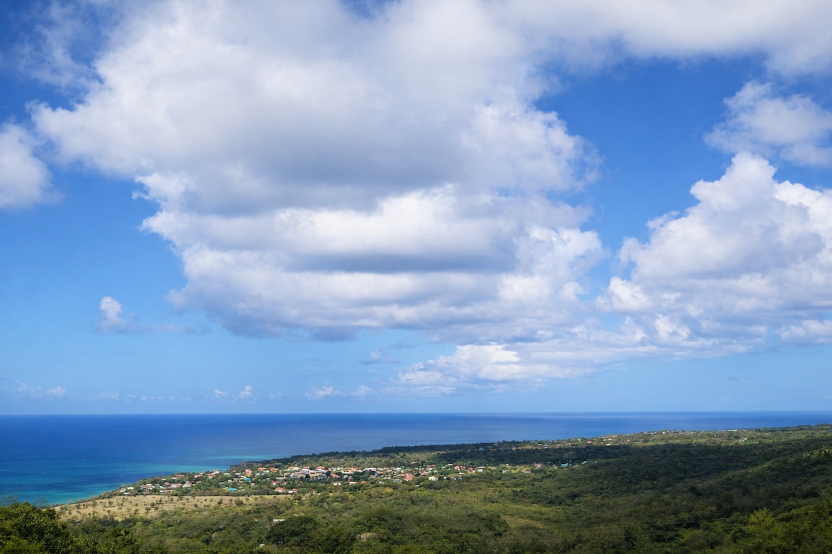 Indulge in the romantic ambiance of this Canopy Hideaway, a unique retreat where rustic charm meets modern comfort. Enjoy breathtaking views of the Caribbean Sea and neighbouring island . Immerse yourself in the tranquility of swaying trees and the melody of crashing waves .Let the symphony of nature from the gentle rustle of leaves to the chorus of birdsong, lull you into tranquility ! Come and experience an unforgettable retreat in our KaiZen TreeHouse .