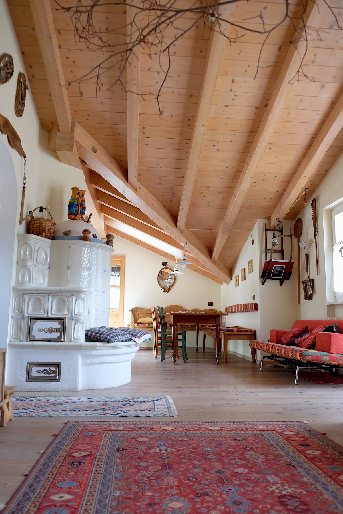 One out of our five delicately renovated apartments located on the second floor of a charming, characterful farmhouse. It is one of the oldest buildings of a cosy little village in the Valle d’Isarco in Northern Italy. We find ourselves right in the center of sun-blessed South Tyrol, on a hilltop at the entrance of the Gardena and Funes valleys. Close to the dolomites mountains but not far away from the popular towns of Bolzano and Bressanone it is an ideal starting point to explore the region.