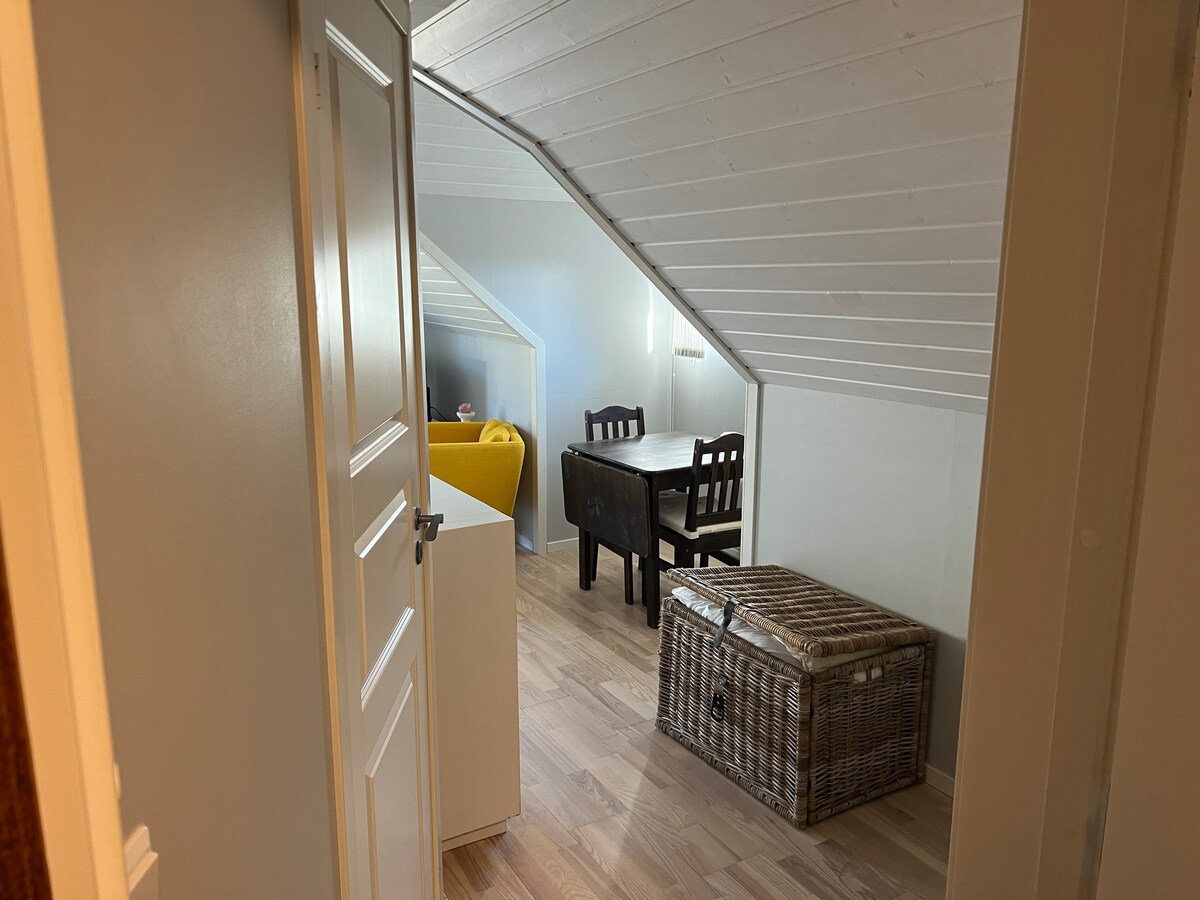 Welcome to our charming house. This is an euthentic Norwegian home ready for you. The 2nd. floor apartment is fully equipped with two bedrooms, kitchen with dining place, living room with fireplace and bathroom with shower. All room`s have heat in the floors. Family friendly house and garden.