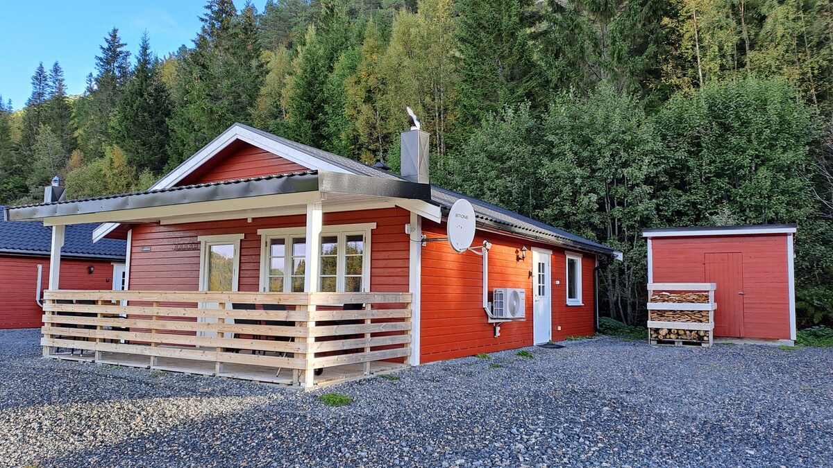 Come to ready-made beds. 96 m2 large house with large terrace, barbecue and beautiful views. 2 bedrooms. Amazing sun conditions. Located on a farm in operation with milk production. Private parking right outside the door. Wheelchair ramp, all on one floor. Opportunities to see both the Northern Lights, elk and deer from the terrace. Child-friendly. Immediate proximity to forest, hiking opportunities and ski trails. Salmon fishing and small game hunting nearby. Own charging cable car must be brought. Charging is paid according to measured consumption.