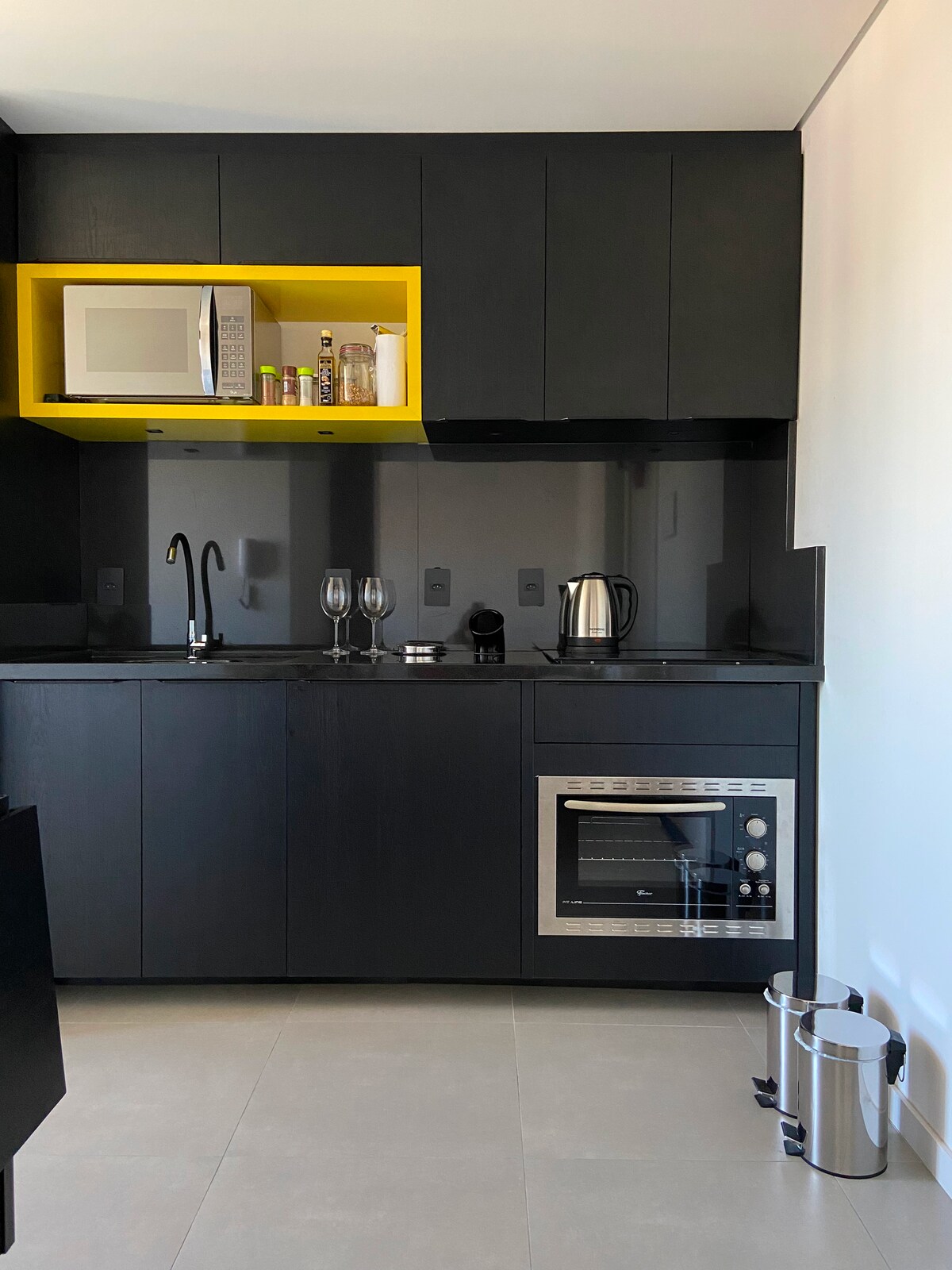 Beautiful studio apartment with garage, in the center of Blumenau, near everything! Building has a gym and an incredible rooftop pool. The apartment is complete and very stylish. Double bed, sheets, covers, pillows, bath towels, AC. Full kitchen with refrigerator, microwave and tableware for 2. Laundry with iron table and iron.