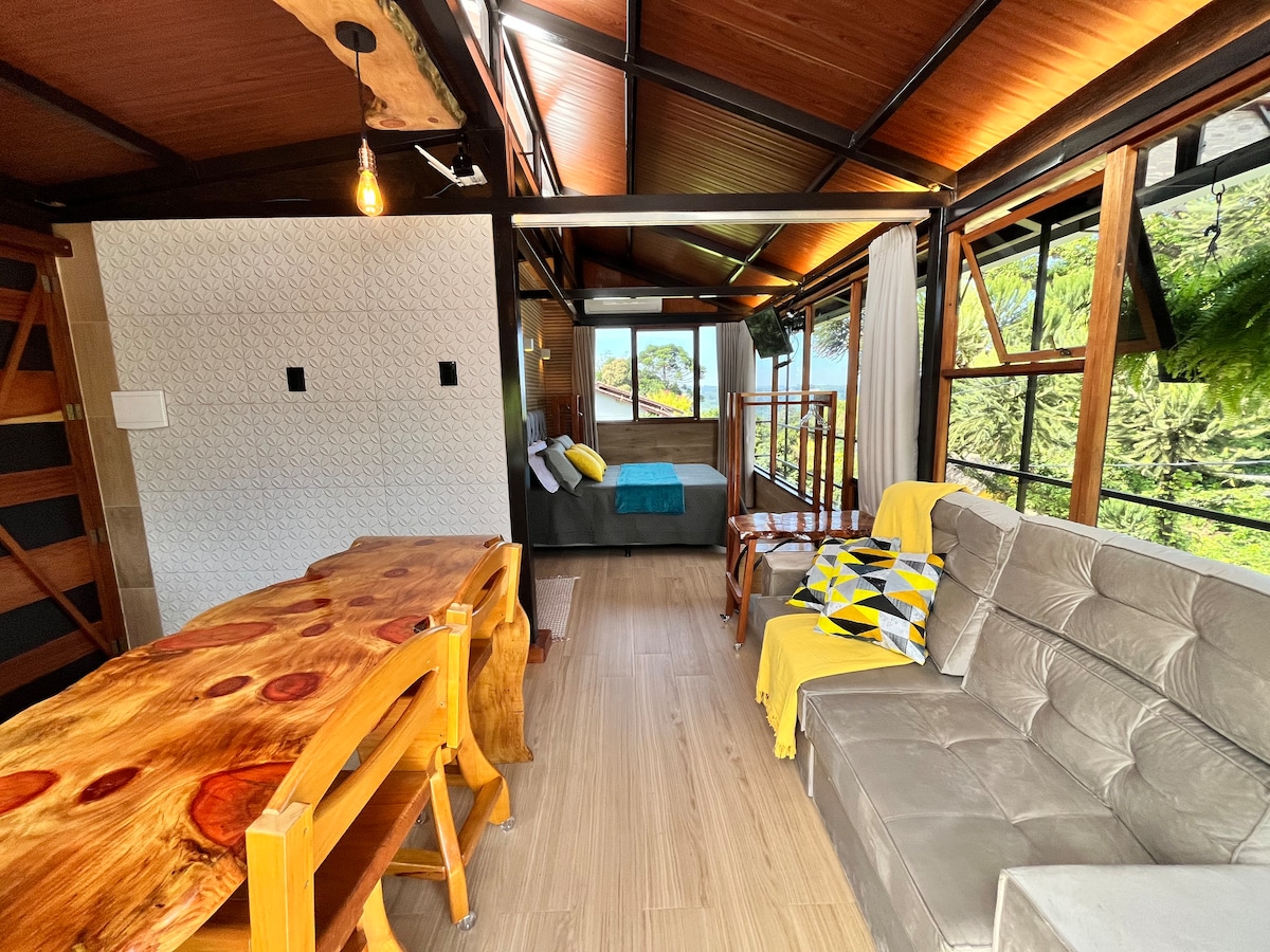 Welcome to Cabana Origem, your rustic and cozy retreat in the middle of the woods, with a privileged view of the valley! Our cabin provides the incomparable warmth of a wood-burning fireplace. It has an outdoor area with a barbecue and deck to enjoy a breathtaking sunset, ensuring memorable moments during your stay. Perfect for those seeking exclusivity and a unique experience of relaxation and reconnection with nature.