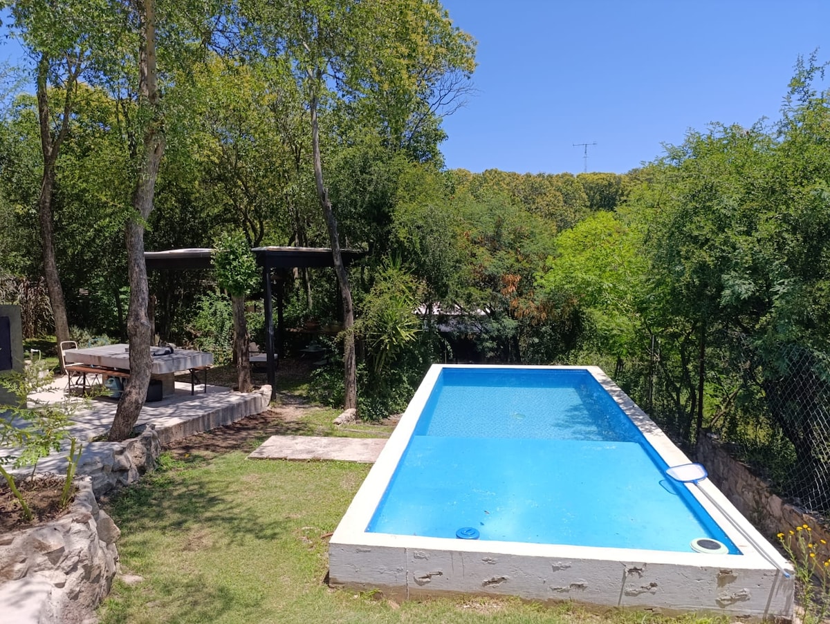 Relax in this unique and quiet accommodation. With a very special location, this house stands out for its natural and quiet environment. You'll only hear birds, the wind, and the leaves of the trees. This beautiful and comfortable house will make your vacation a place of rest and enjoyment. A few meters from the El Chorrito stream and trails where you can hike to enjoy the mountains. It is also 15 blocks from downtown La Falda, with a great gastronomic offer.