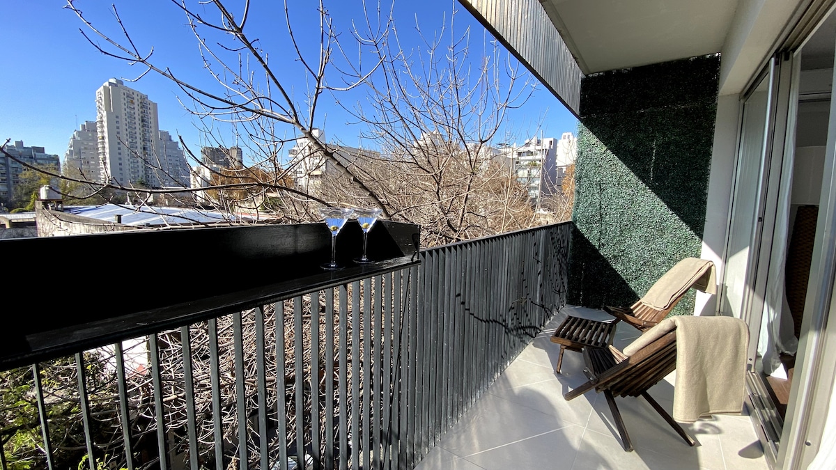 Brand new studio apartment with kitchinette, bathroom and balcony with great views in the heart of Recoleta. Cool modern decoration, fully equipped and safe. SmartTV with cable and Netflix (login with your account). Building with great facilities: heated indoor pool, outdoor pool with solarium, spa with massage room and sauna, and gym. Walking distance to the best restaurants, bars and cafes, as well as to bus and subway station.