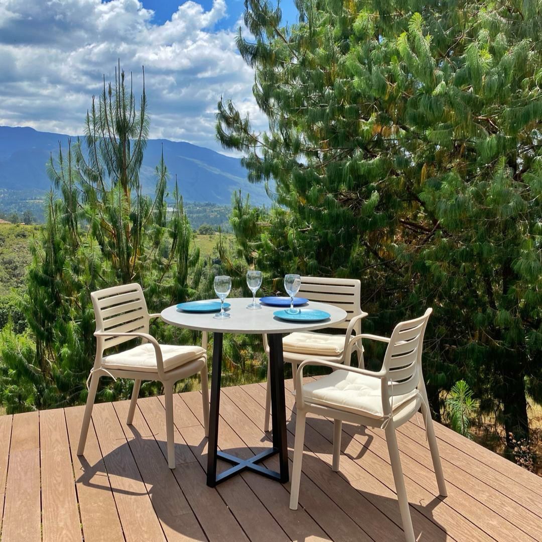 Modern double-height Glamping in the mountains of Villa de Leyva, with wonderful sunrises and sunsets, 15 minutes from the main square by vehicle. If you do not have a vehicle, we will contact you with local taxis You have a super room, with 3 beds, kitchen, Nevecon, dining room, living room, lounge chairs, bathroom, terrace, catamaran mesh and private campfire area We are known for luxury and comfort in our facilities, (hot water, towels and internet). Private parking.
