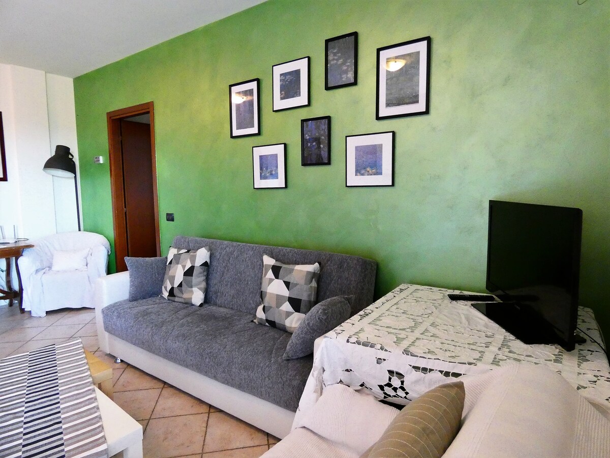 The apartment is a cozy two-room apartment with exposed wooden beams in a quiet condominium just a 10-minute walk to the center and a short walk to the supermarket. The apartment is on the third floor and can be reached by elevator. Vaprio is located halfway between Bergamo and Milan, just minutes from the A4 highway exits of Trezzo sull'Adda and Capriate and just a 10-minute drive from the Leolandia Amusement Park.