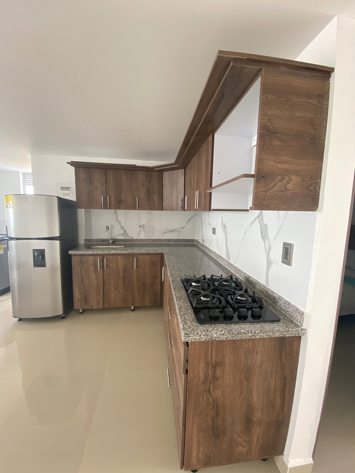 Central, rappi arrives and is close to the city, easy access. The adventure begins the moment you arrive. Unload your bags and sit on the deck overlooking the snow-capped Ruiz to enjoy a welcome wine or cocktail. Later, you decide whether to spend the afternoon ⏰ In the bathtub 🛀 with a view of all of Manizales In the catamaran hammock if you're a little more daring Or maybe you'd rather light a fireplace, take some photos in our hanging nest. It has a fully-equipped kitchen and a refrigerator.