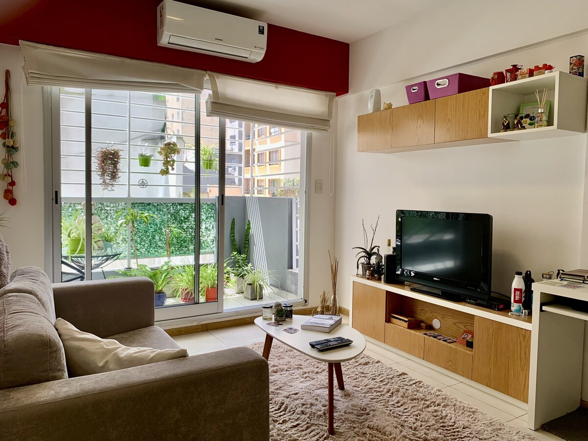 Recycled apartment (2020), bright and warm decoration. Located in the heart of Boedo, the birthplace of tango. Close to restaurants, bars, and cultural centers, 7 blocks from subways and 3 from buses. 15 minutes from downtown. Fully equipped to rest after a day of sightseeing, or work from home or simply relax. We'll also greet you with a welcome breakfast and a Malbec wine, an Argentine grape variety par excellence, so you can enjoy a peaceful stay.