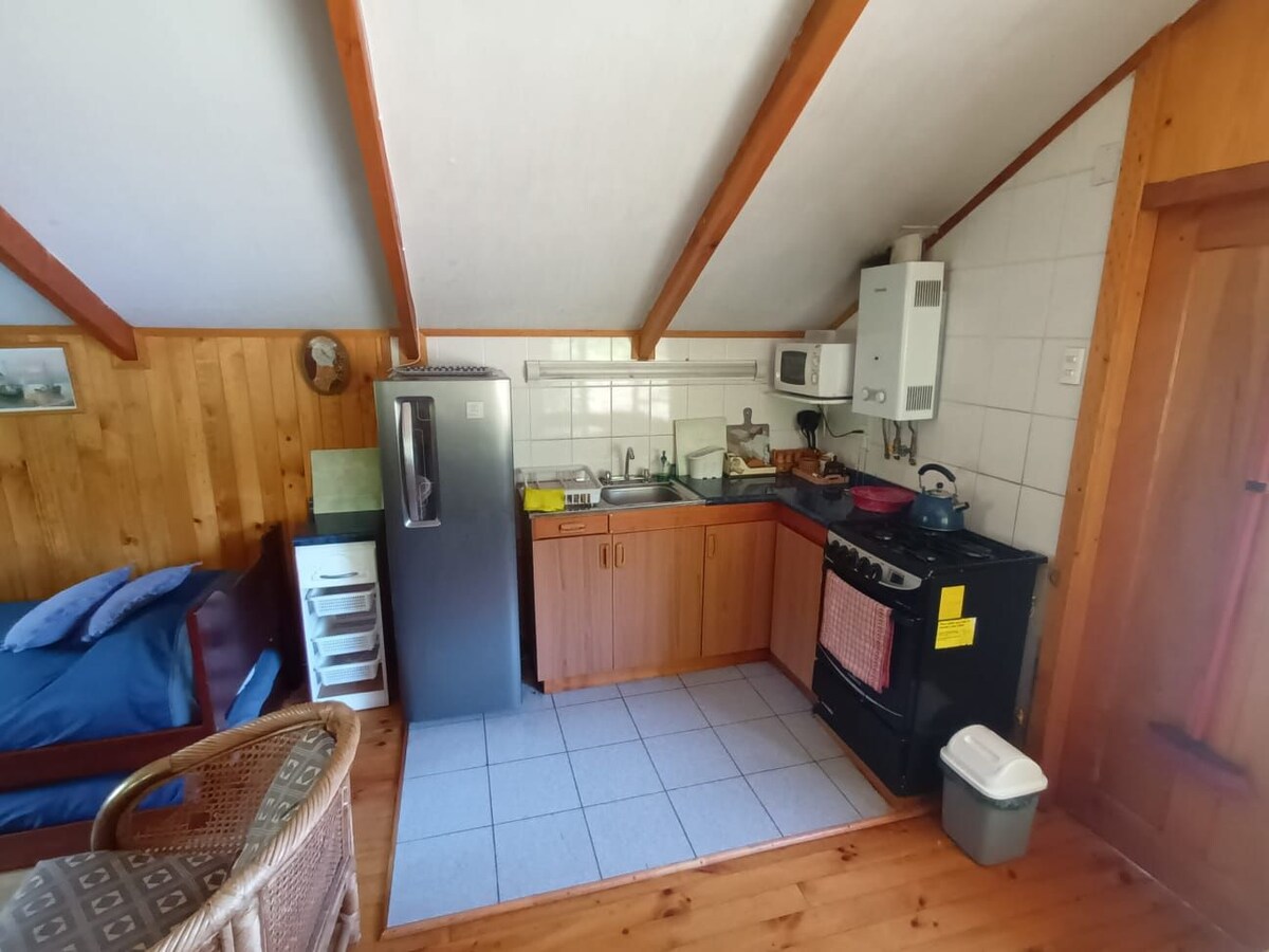 Private cabin in the Andean Araucanía, ideal for rest, nature and digital detox. Fully independent accommodation surrounded by native forest, offering total privacy and river access. Features comfortable bedrooms, private bathroom, fully equipped kitchen, heating and an outdoor terrace with natural views. Strategically located 20 minutes from Melipeuco, close to Conguillío National Park, Sollipulli Volcano and Icalma. Guided nature experiences available (with additional cost).