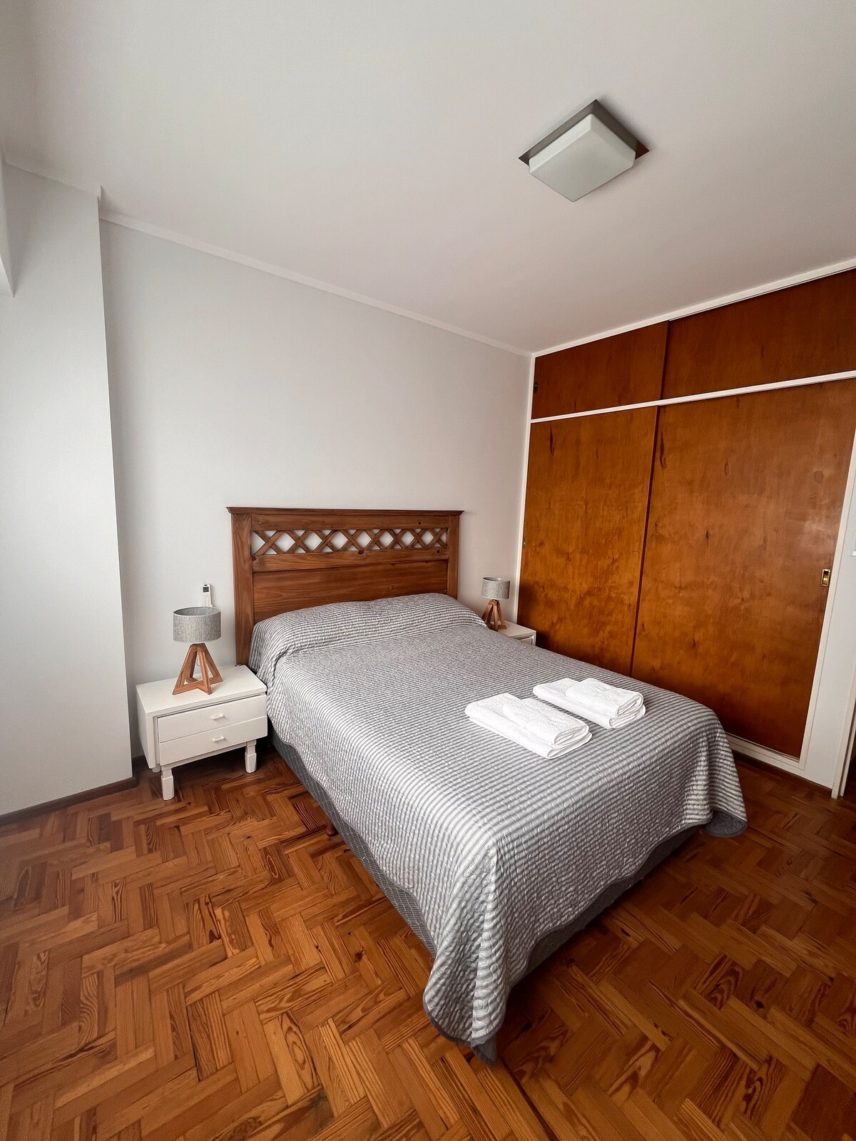 El dpto se encuentra en excelente ubicación, a solo 3 cuadras de Plaza principal y centro comercial. Está muy bien equipado y es confortable. Posee 2 camas, 1 cama de 2 plazas y 1 camas de 1 plaza. Cuenta con ropa de blanco sábanas, frazadas,b almohadas y toallas. Con AA frío calor y ventilador de piso( turbo) Es muy luminoso y con buena ventilación cruzada. Posee un pequeño balcón. El dpto esta en el 1er piso y el edificio tiene ascensor. y con cochera en el edificio.