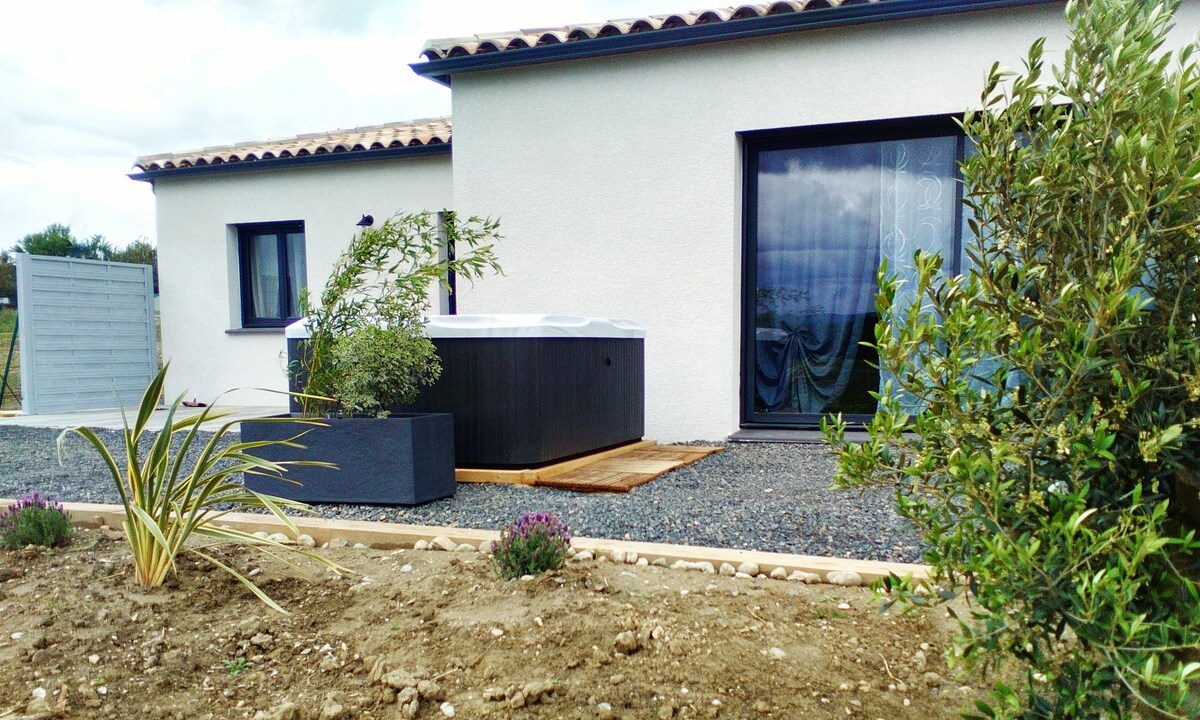 Log cabin with hot tub on the outskirts of Carcassonne.