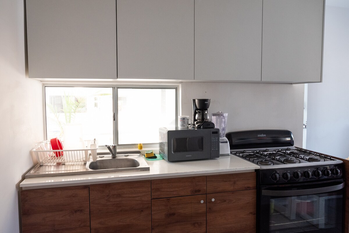 Stay steps from the beach in a newly renovated 1-bedroom suite with a king bed, cozy living area and sofa bed. Enjoy a peaceful garden, and a sparkling pool. Located in charming Puerto Morelos — safe, walkable and famous for its beautiful beaches, coral reef and relaxed vibe. Perfect for couples or small families seeking comfort and convenience.