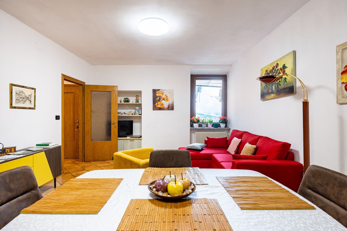 Delightful and bright apartment of about 67 square meters completely renovated with a beautiful bathroom and hot tub. Located on the third and last floor of a small building of 7 units without elevator. 50 meters from the bus stop, the Rhaetian Museum, the entrance to the picturesque path to the Sanctuary of S. Romedio. Ski slopes are a 15-minute drive away. From the charming attic you can enjoy a magnificent view without any obstacle, on the Brenta Group and the Maddalene Group