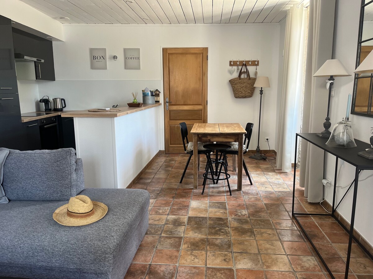 Côté Campagne, a place of character in a privileged environment. On one level, it opens onto a patio with garden furniture and BBQ. Air-conditioned, it has a living room with sofa bed. The kitchen area is fully equipped: dishwasher, washing machine, Nespresso, etc. The sleeping area consists of a 160 x 200 double bed with a bathroom equipped with a walk-in shower. Your stay can be complemented with private SPA sessions to be arranged upon arrival.