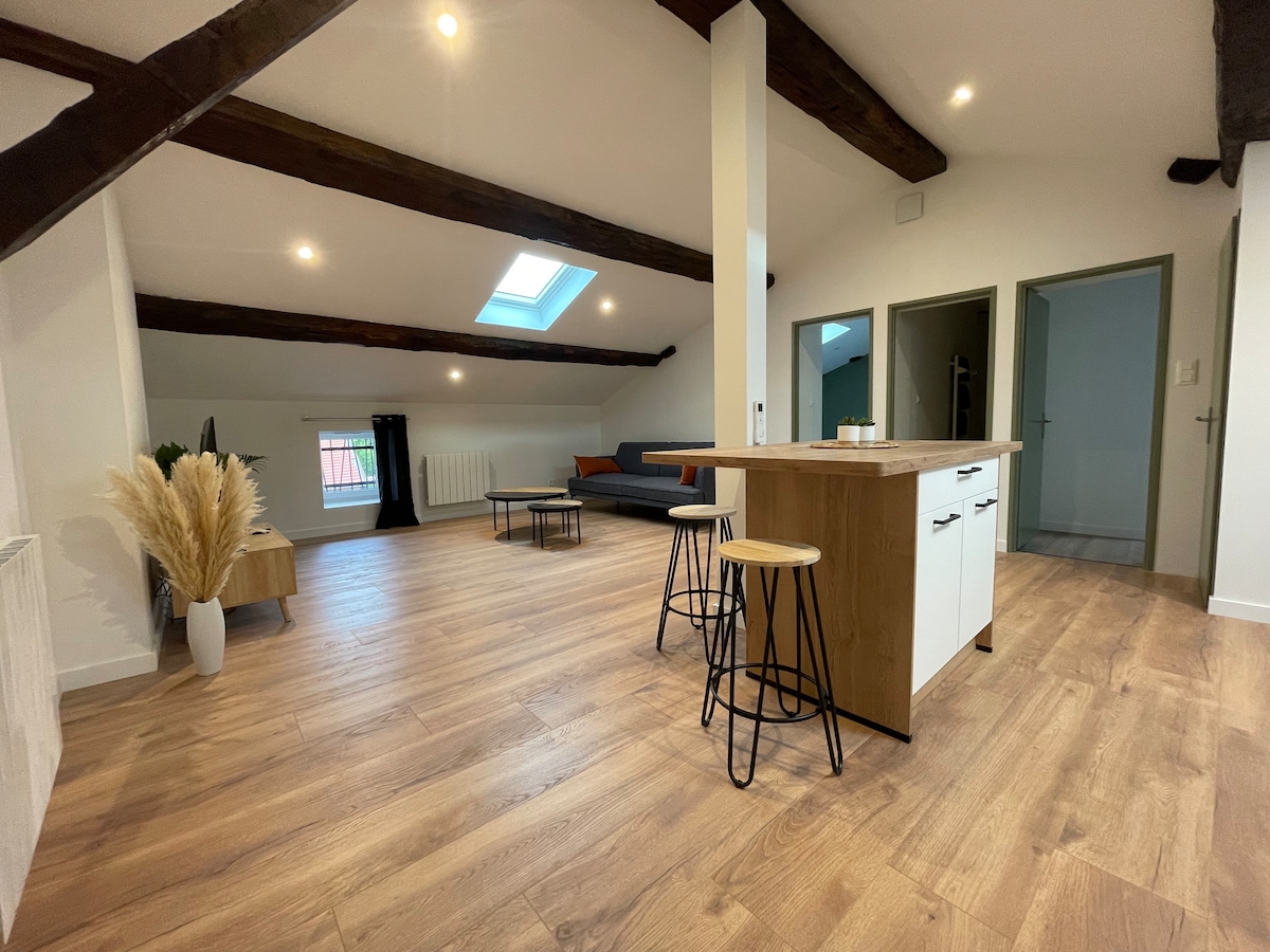 Large, charming duplex apartment, luxuriously appointed in a historic house, a stone's throw from the center of Villefranche and a ten-minute walk from the train station. Impeccable comfort and cleanliness. Views of the ramparts and the former Ursuline Convent. Ideal for a trip with family or friends to discover the Beaujolais region. Private entrance, living room 41 m2; 2 19 m2 bedrooms with top-of-the-range 180cm bedding. Comfort sofa bed (140) in living room. English and German fluent.