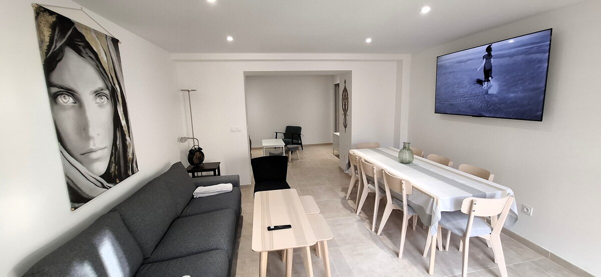 Enjoy this fully renovated home for family stays or business trips. Ideally located 2 steps from the quays of the Yonne and its activities, in the center of Villeneuve sur Yonne, this house can accommodate 10 people, is composed of 3 large bedrooms with 160 cm beds (including 2 bedrooms with 1 140 cm sofa bed in +), equipped kitchen, living room with sofa bed, 2 bathrooms. Outside you will find a large terrace for your meals and moments of relaxation.