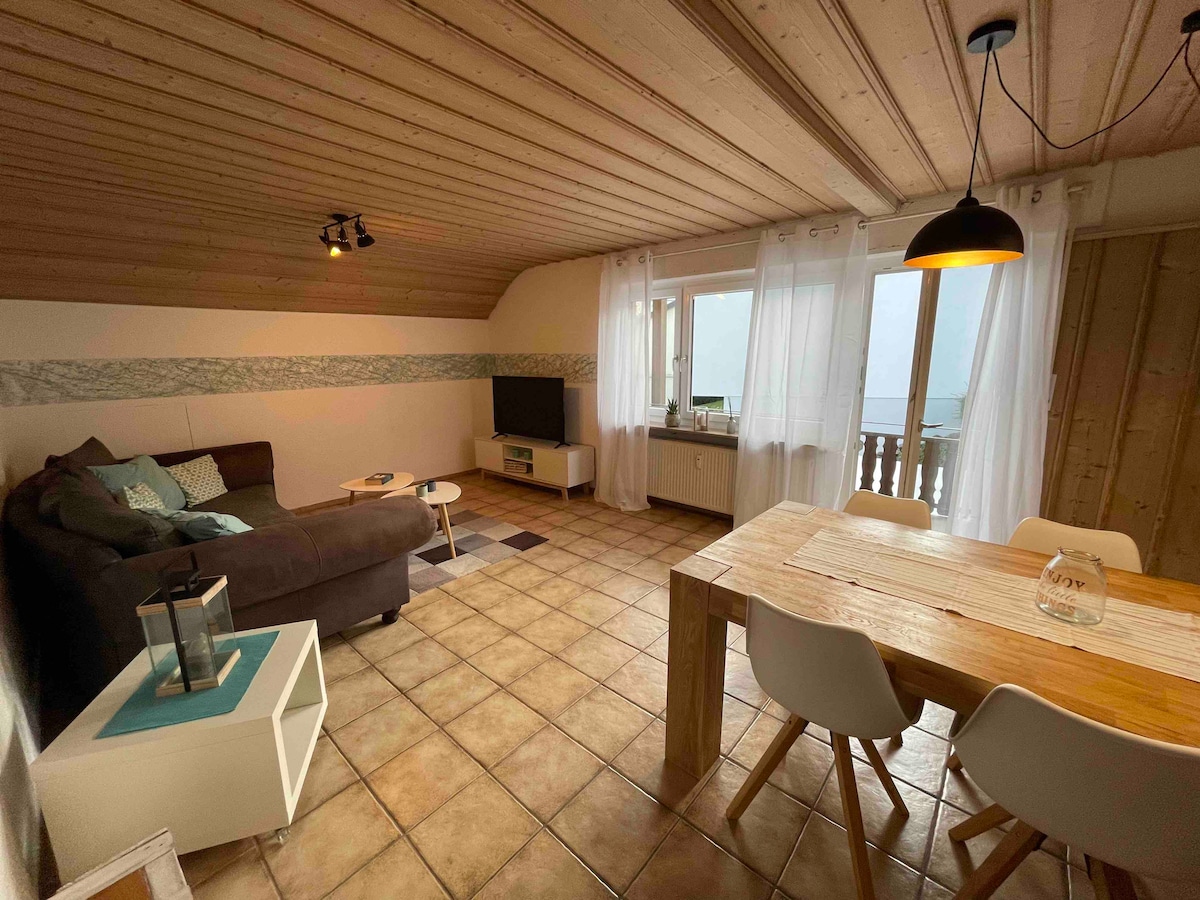 Wellcome in our modern furnished DG apartment with beautiful views of the Hegauberge. A bright apartment of approx. 80 sqm awaits you: with fitted kitchen (incl. dishwasher, electric cooker with oven, fridge with freezer compartment and coffee machine); Large living room with TV and a dining area and a covered balcony; Large bedroom with double bed and single bed (a baby travel cot is also available if required); small bathroom with shower and toilet.