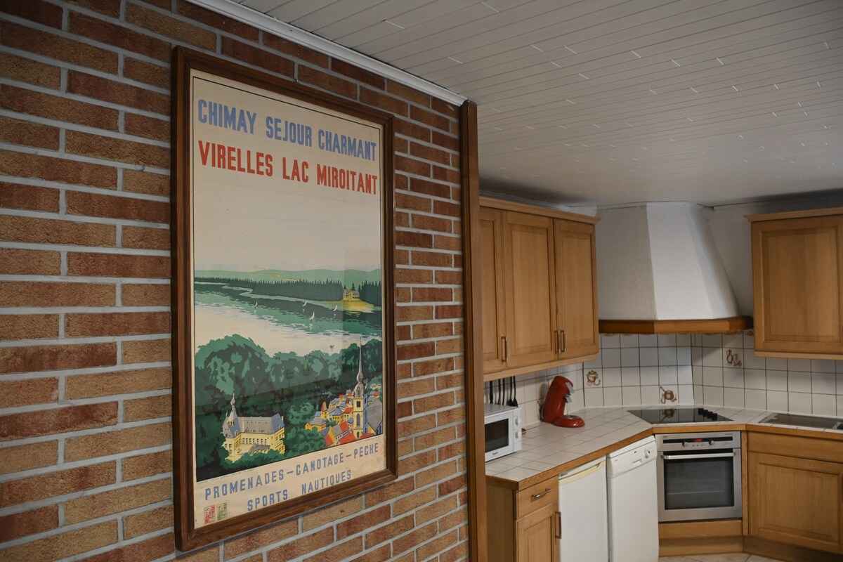 Relax in this quiet and elegant accommodation located in the center of the village of Virelles. Interior in local stone, a truly typical setting. Close to the start of walks, restaurants, bakery, butcher, within walking distance. Not far away, to see: The aquascope, a splendid nature reserve. The remarkable Abbey of Scourmont, known worldwide for its cheeses and Trappist beer. Chimay Castle, whose story is told by Stéphane Berne. And so many other things.
