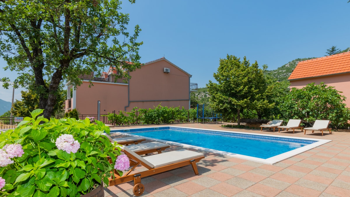 What this place offers: 🏊♂️ Private seasonal pool & indoor hot tub 🌿 6,000 m² garden – perfect for kids 🎮 Games room with table tennis, darts & sports gear 👨👩👧Great for families & longer stays (up to 9 guests) 🔥 Fireplace, fast Wi-Fi & peaceful nature Villa Merkur is a newly renovated holiday home in a quiet, secluded spot in Orahovica, surrounded by forests and the pristine nature Papuk Nature Park. Ideal for families, groups, and guests seeking a relaxing getaway.