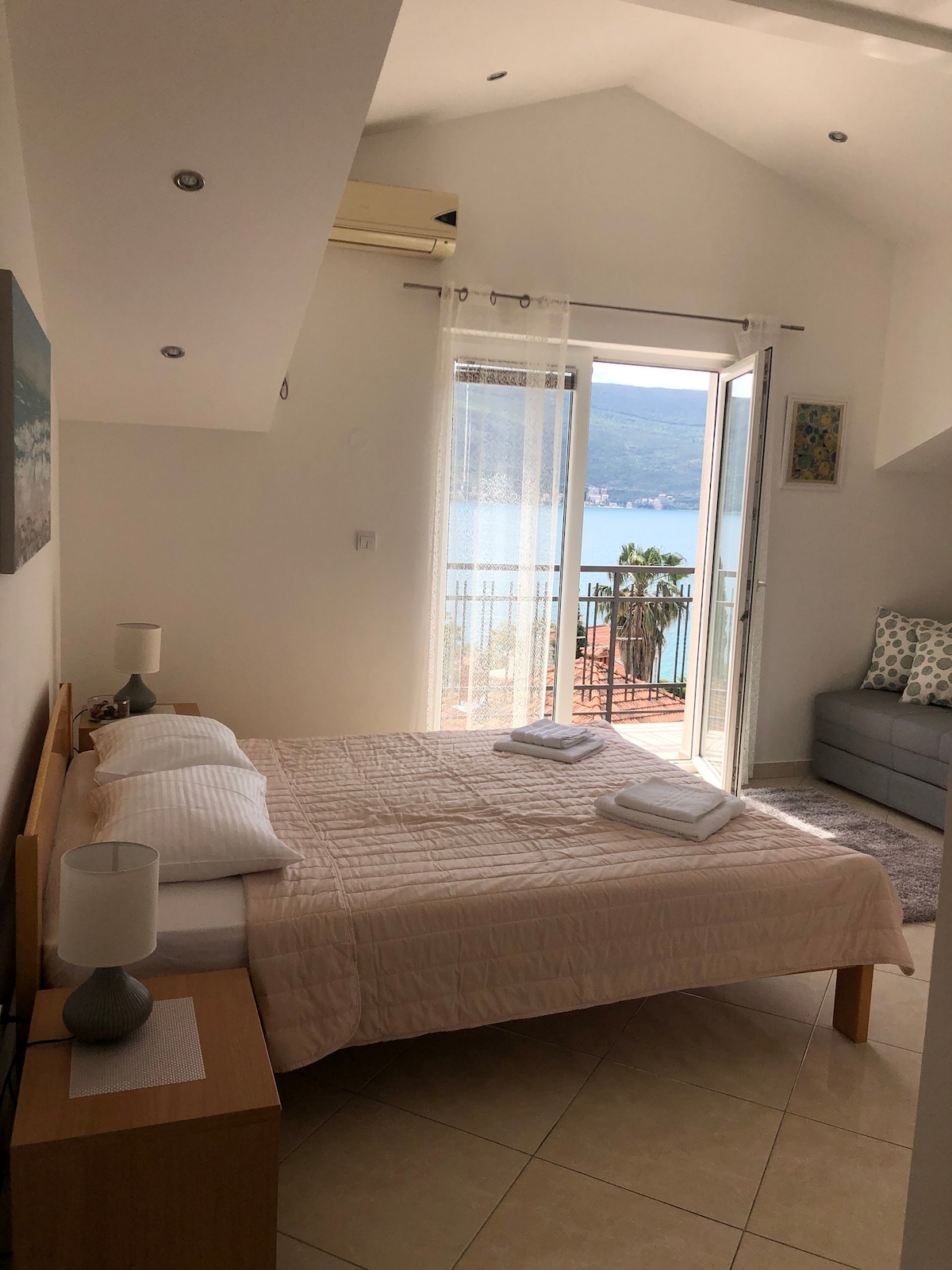 The apartment are located a LITTLE UPHILL so it hawe beautiful views of the entire Bay of Boka and Tivat.Apatmani is new, you hawe garage for car. Apartment will welcome you to my home-grown wine and beer from Montenegro,In the evening on the terrace there is a unique peace of the city noise and a fantastic view of the whole City and Bay,My place is neer to the airport, the beach, and Bus station. You’ll love my place because of the outdoors space and the light and quiet for holiday.WELCOME