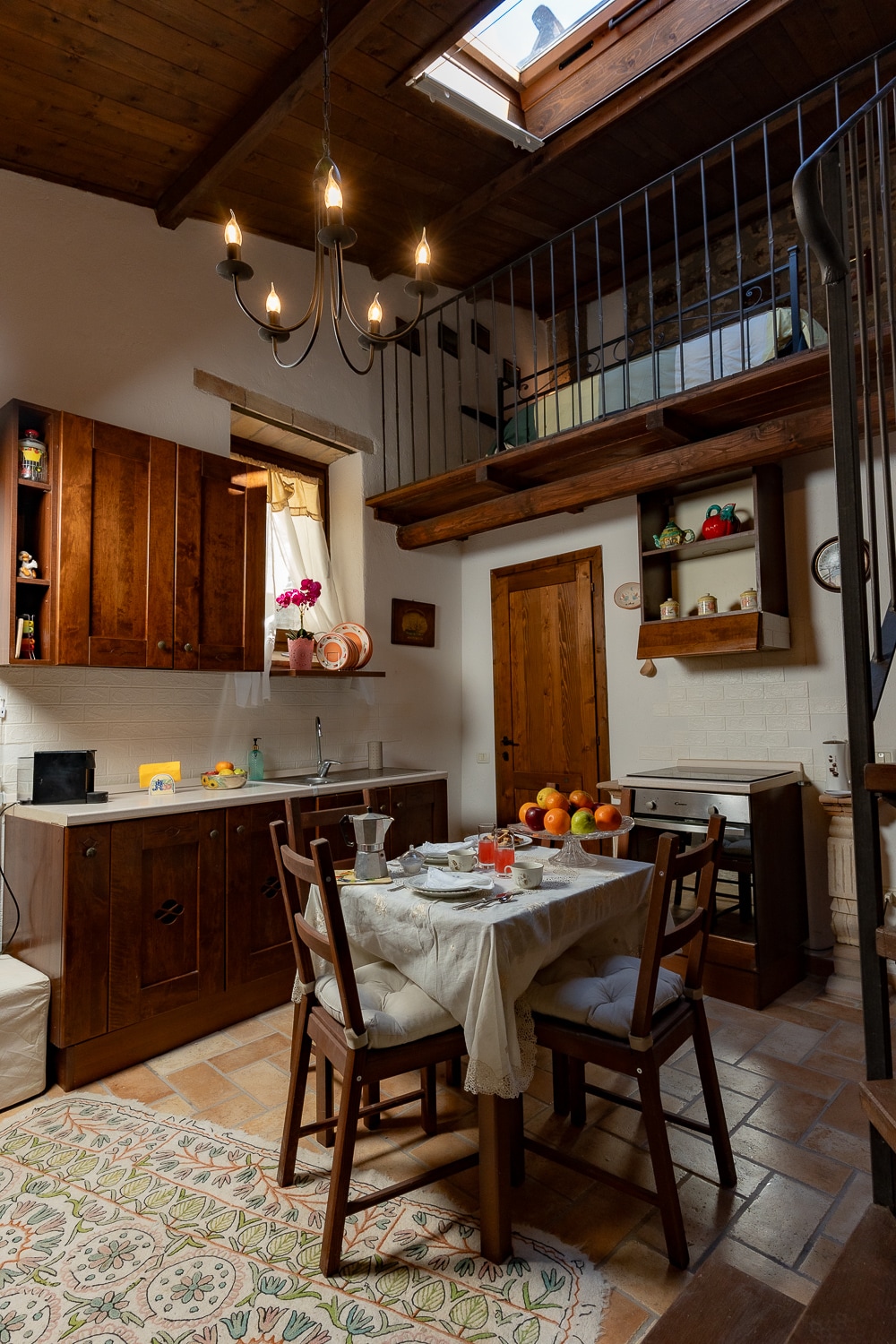 Small apartment in the heart of the historic center of Vignanello, with panoramic views of the Cimini Mountains. Located on the -1 floor of a structure dating back to the 1700s, it features vaulted ceilings that, together with the large fireplace and stone jambs, make the environment cozy and elegant. It consists of a bedroom with a double bed, an equipped kitchen and a small bathroom. Ideal as a base for exploring the wonders of Tuscia.