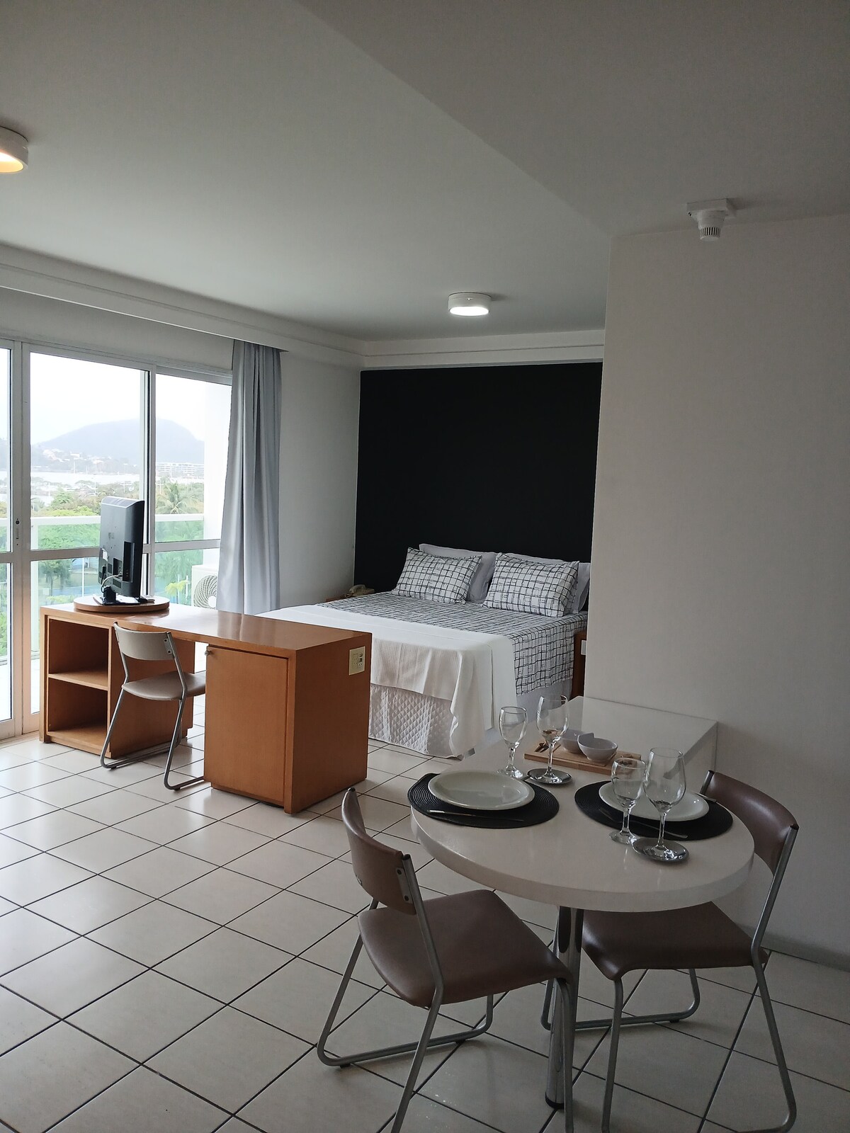 A 13.19 m² space with everything you need for a stay for work or leisure. In the bedroom, there is a microwave and minibar for your convenience. Two blocks from the Triângulo das Bermudas - Vitória's best bar complex, the apartment has the most privileged location in Praia do Canto. The neighborhood offers bars, bakeries, supermarkets, pharmacies and restaurants. Easy access to Shopping Vitória (5 minutes from car), the 3rd bridge - which connects Vitória to Vila Velha - and the Camburi Beach.