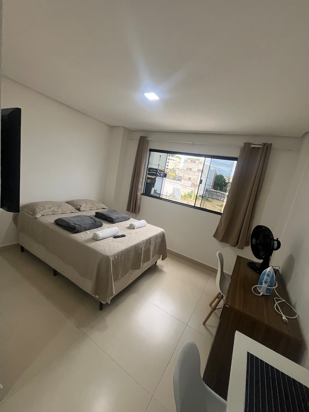 Studio novo e moderno, oferece conforto e segurança. Possui 1 cama queen, 1 sofá cama, ar condicionado, TV Smart, Wi-Fi, cozinha com frigobar, microondas, chaleira, pratos e demais ítens para refeições rápidas. Localizado no centro de Vitória da Conquista, conta com garagem, fechadura eletrônica para auto checkin/checkout. O Edifício dispõe de câmeras, fechadura digital. Descanse nesse ambiente elegante, estiloso e seguro. Curta uma experiência elegante neste lugar bem-localizado.